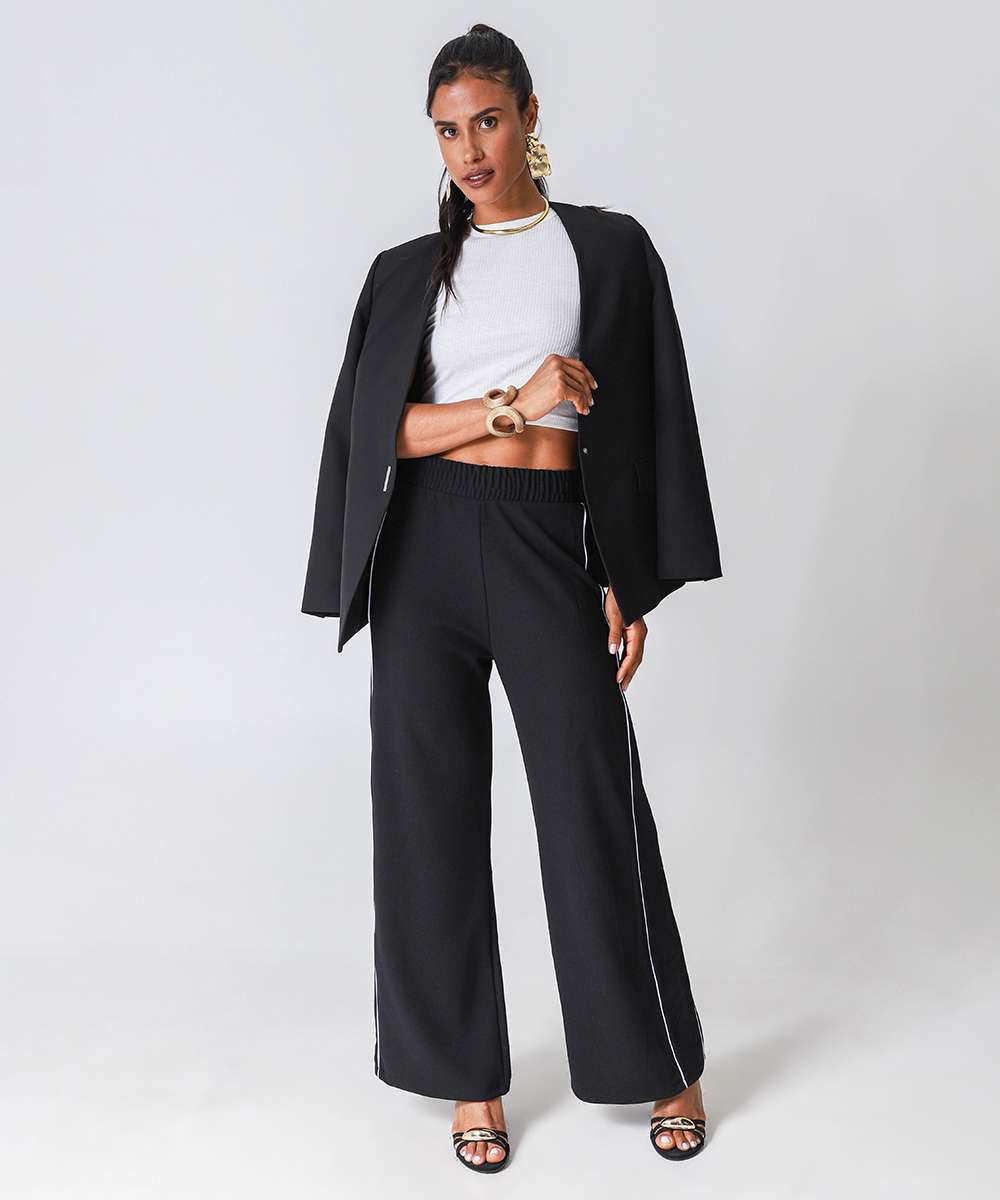 Calça Feminina Crepe Pantalona Friso Marisa Preto