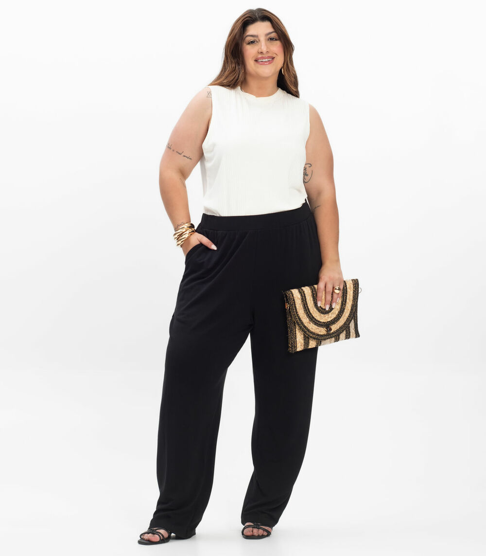 Calça Feminina Plus Size Em Molecotton Secret Glam Preto