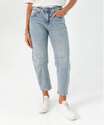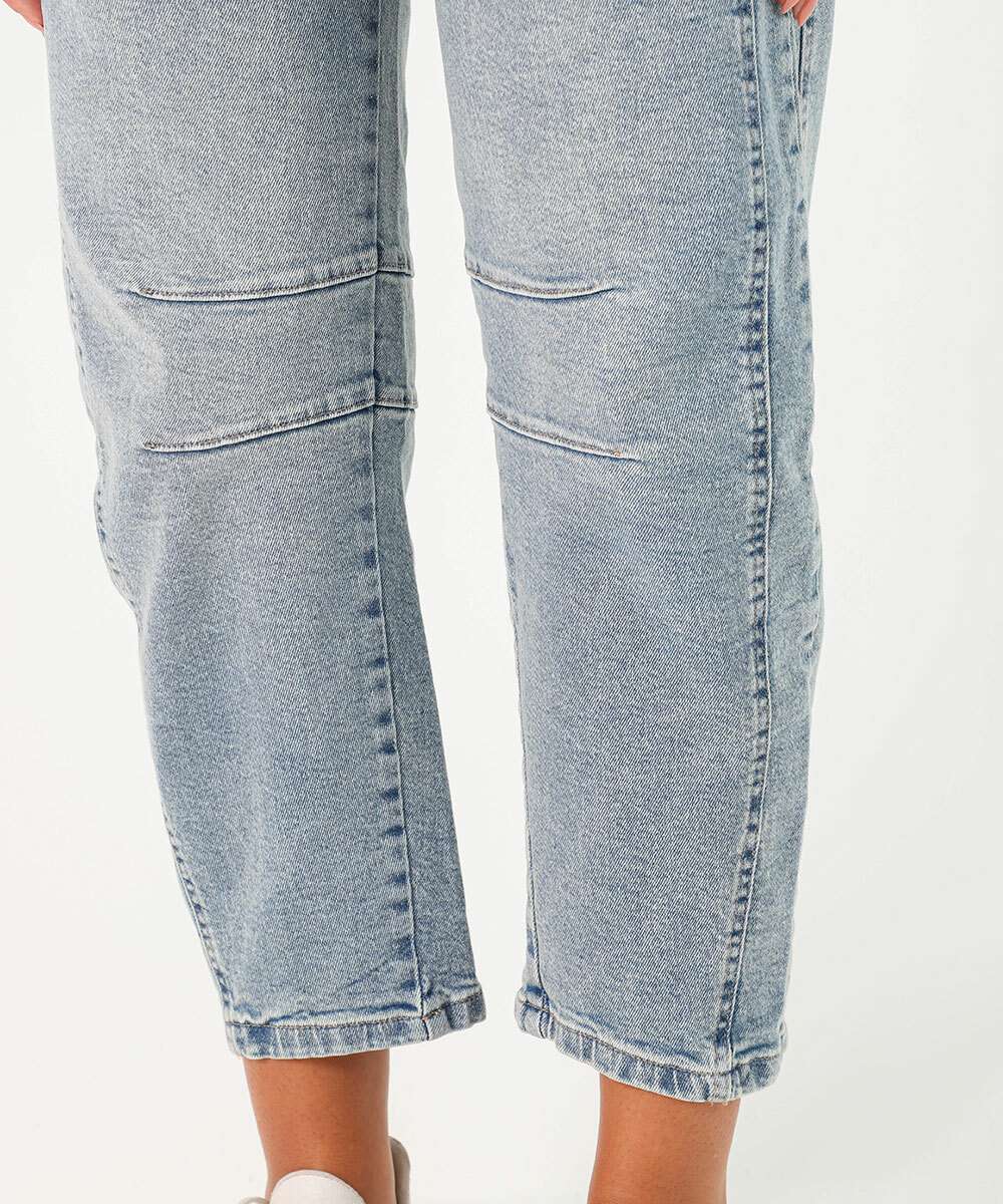 Calça Jeans Barrel Feminina Bolsos Sawary Azul