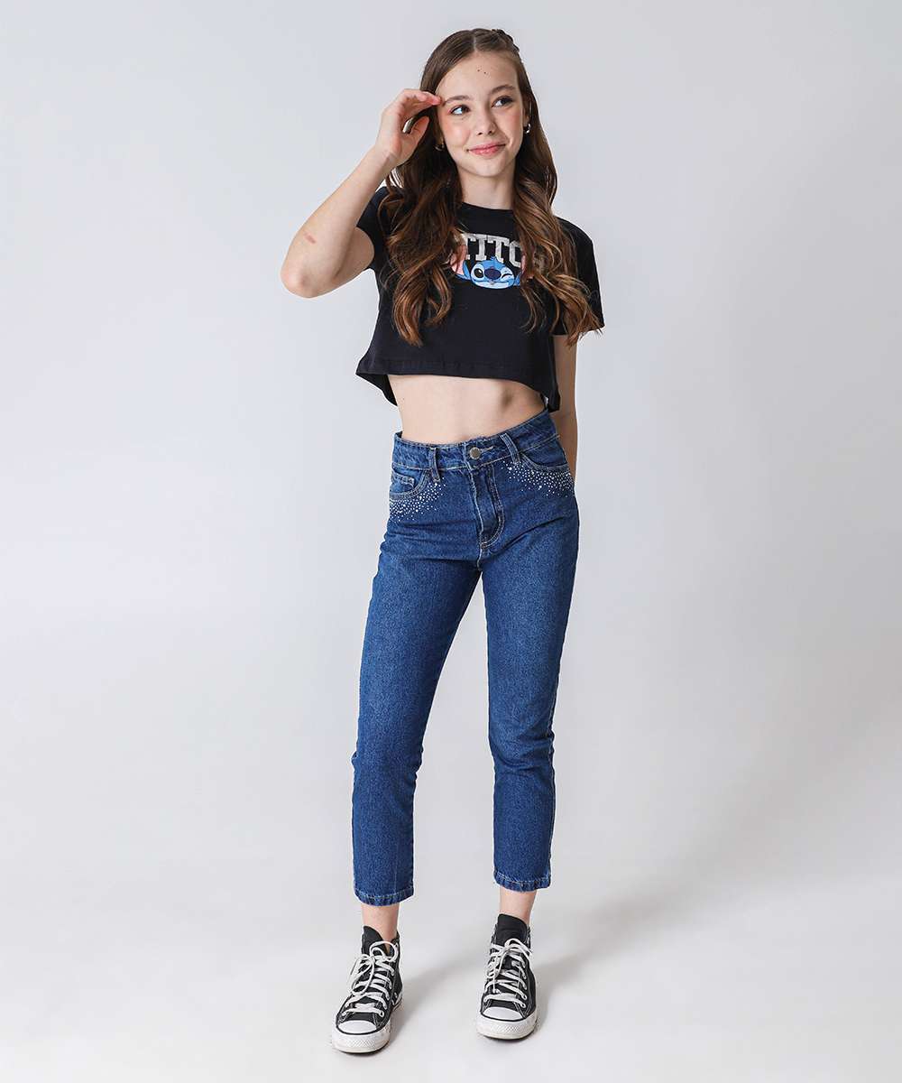 Calça Jeans Cigarrete Juvenil Strass Tam 10 a 16 Azul