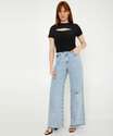 Modelo: Calça Jeans Destroyed Wide Leg Pantalona Feminina Marisa
