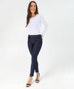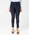 Detalhes: calça jeans skinny feminina, jeans azul escuro feminino, calça jeans ajustada, jeans confortável feminino, calça feminina moderna, moda feminina jeans, calça casual feminina