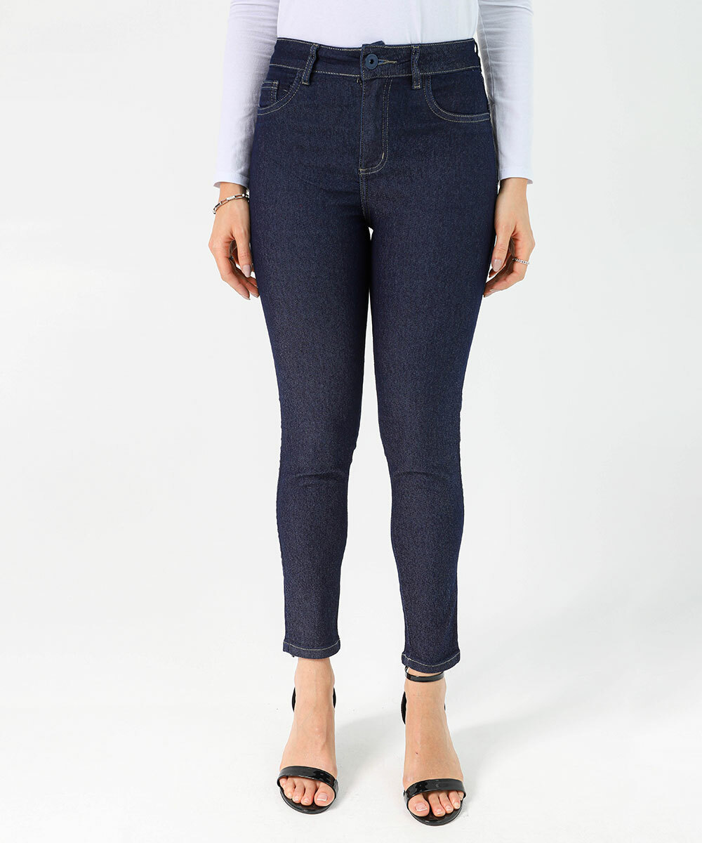 A calça jeans feminina skinny azul escuro é essencial para quem busca um visual moderno e elegante. Com modelagem ajustada, valoriza a silhueta e garante um look versátil para diversas ocasiões.