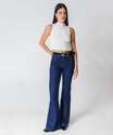 Calça Jeans Flare Feminina Botão Duplo Azul