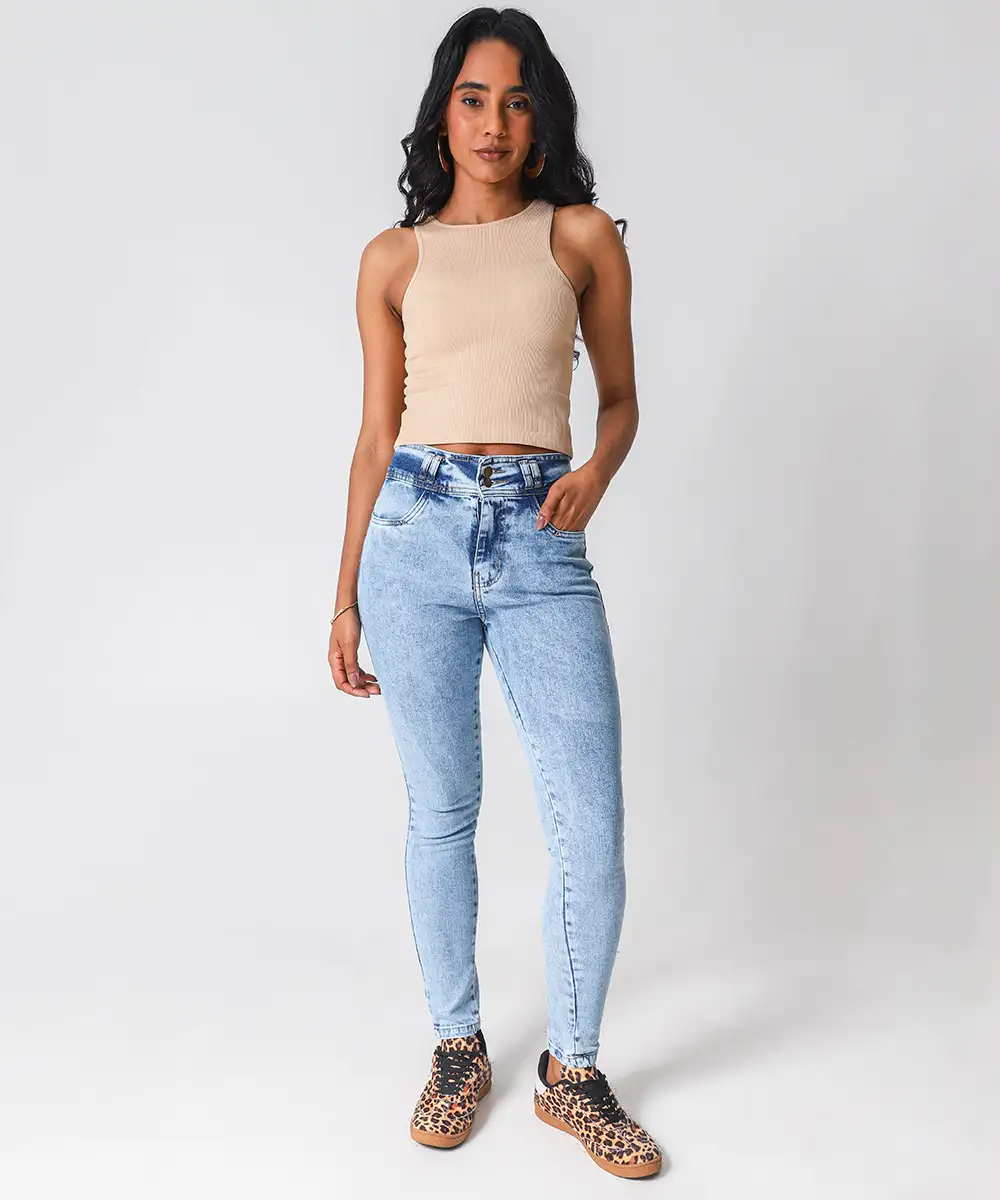 Calça Jeans Skinny Feminina Marmorizada Azul