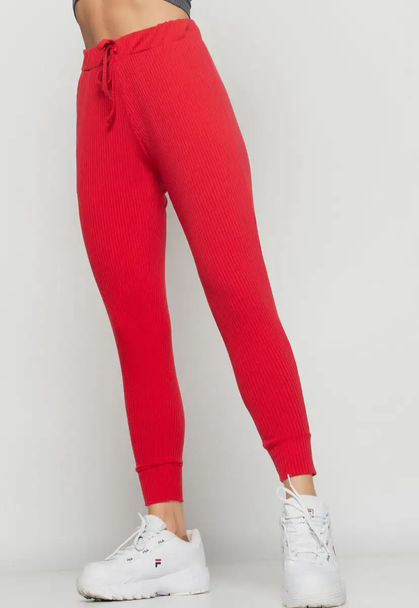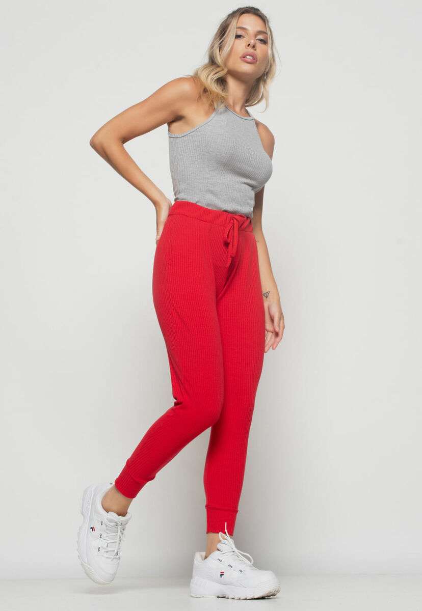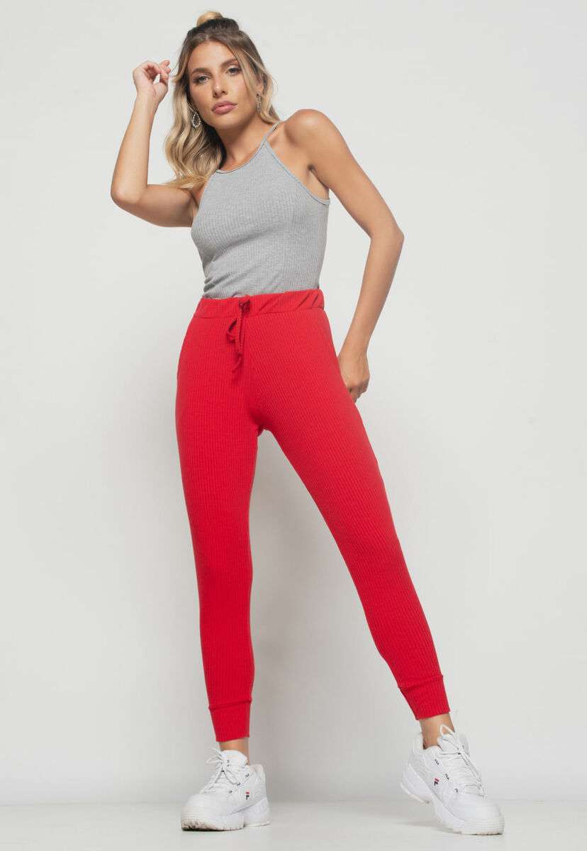 Calça Jogger Comfy Malha Canelada Vermelho Claro Salvatore Fashion