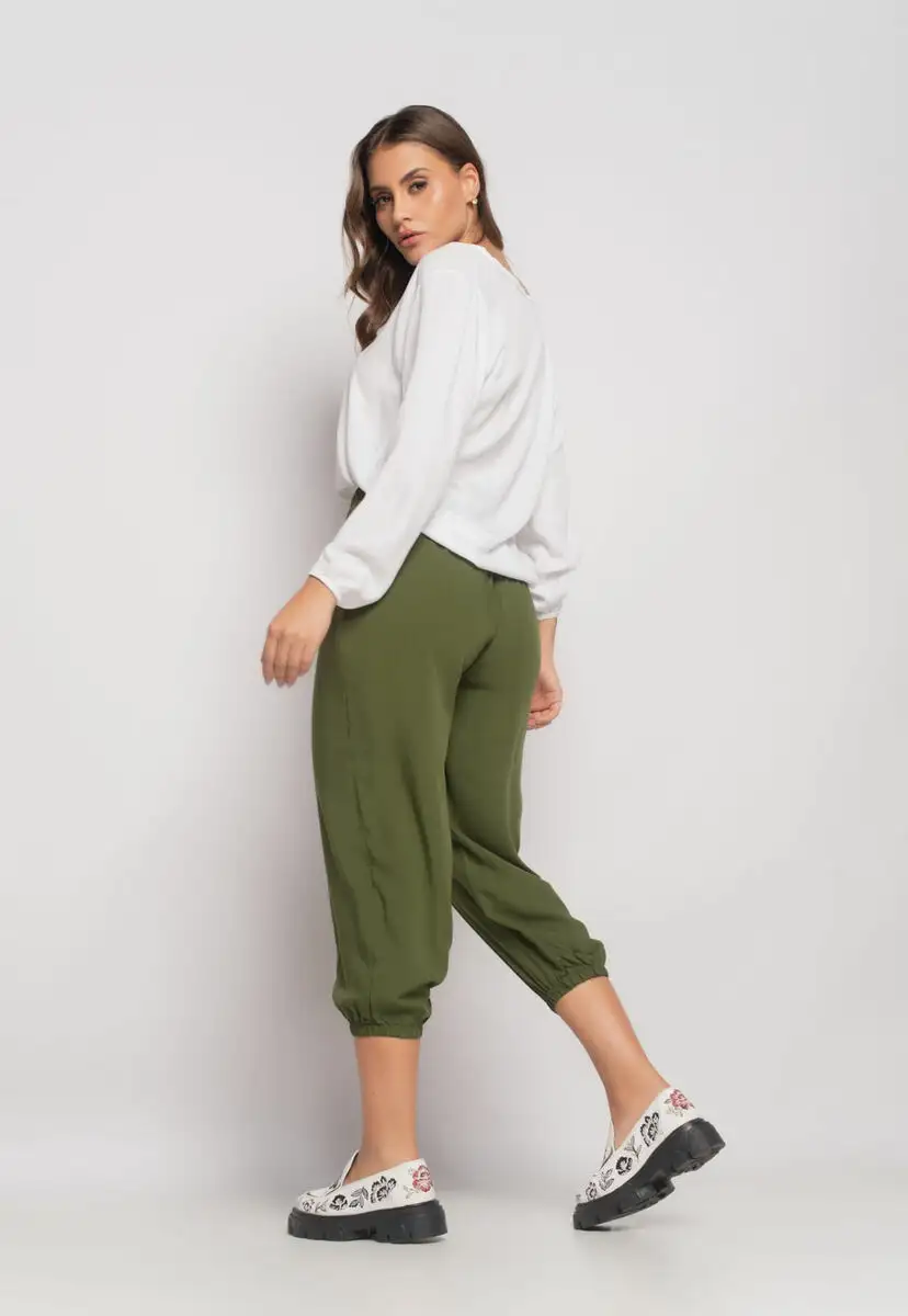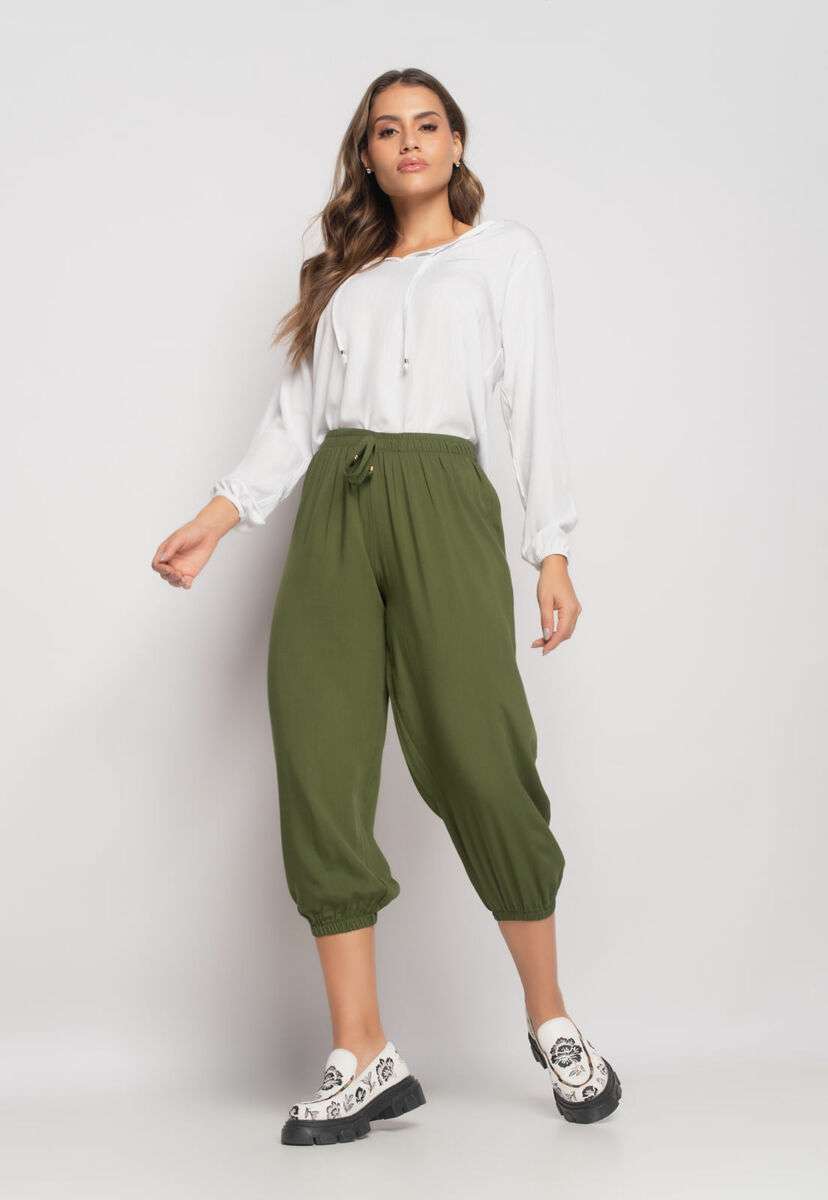 Calça Jogger Viscolinho Verde Musgo Salvatore Fashion