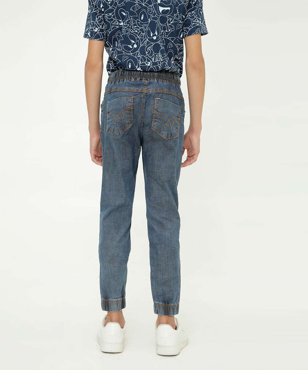 Calça Juvenil Jeans Jogger Bolsos Tam 10 a 16