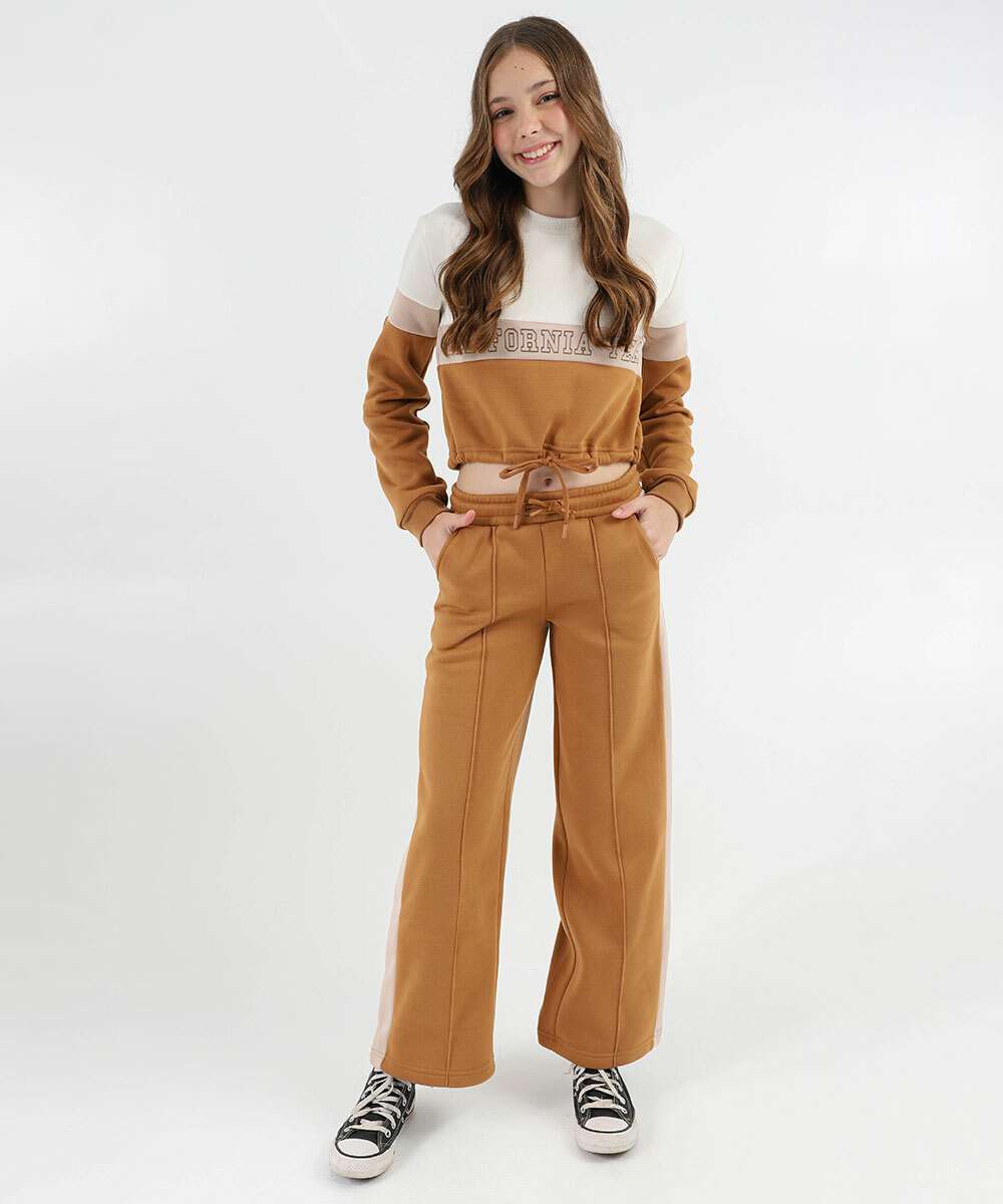 Calça Juvenil Wide Leg Moletom Marisa Tam 10 a 16 Marrom