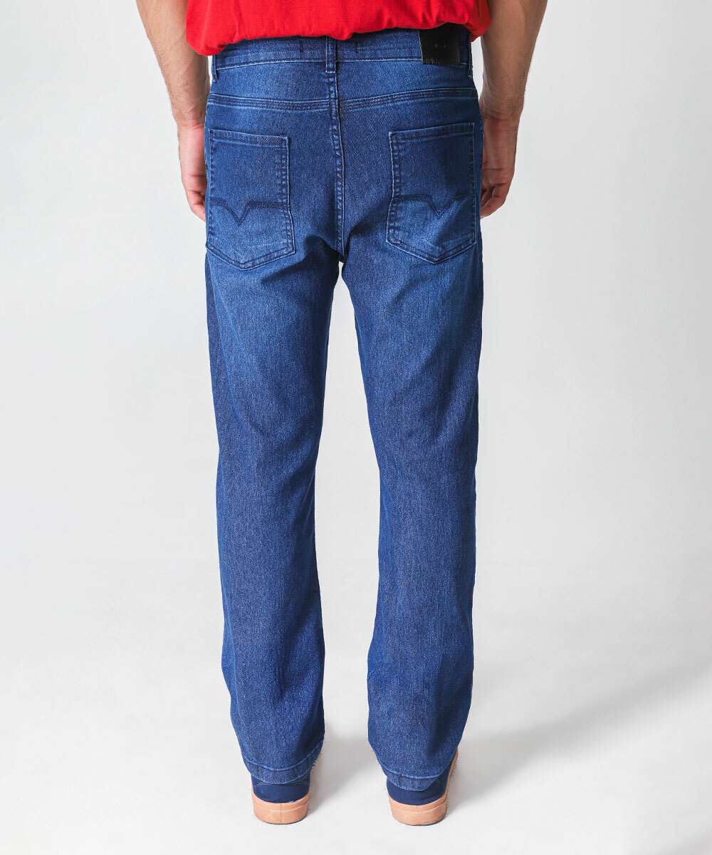 Calça Masculina Jeans Reta Bolsos Azul