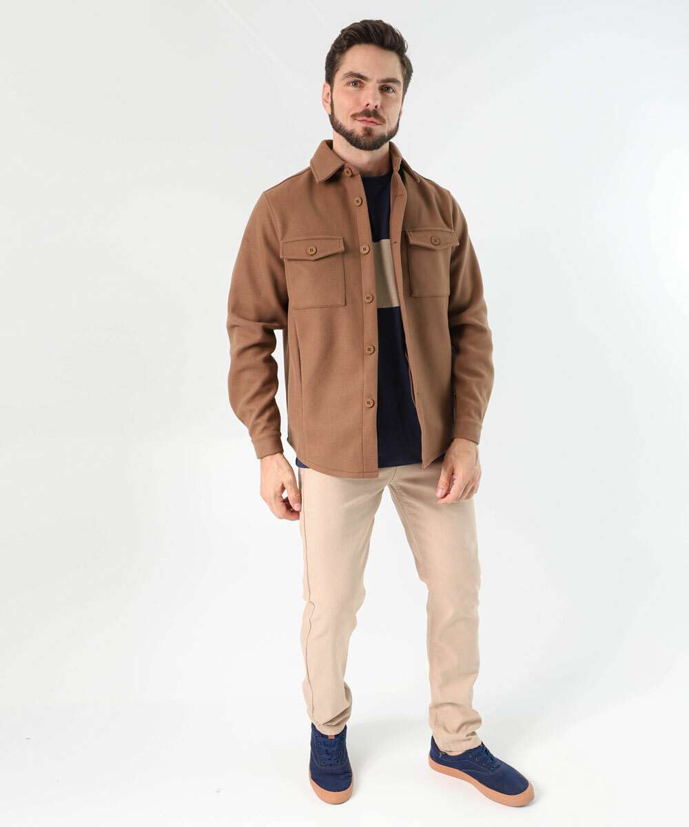 Calça Masculina Sarja Slim Bege