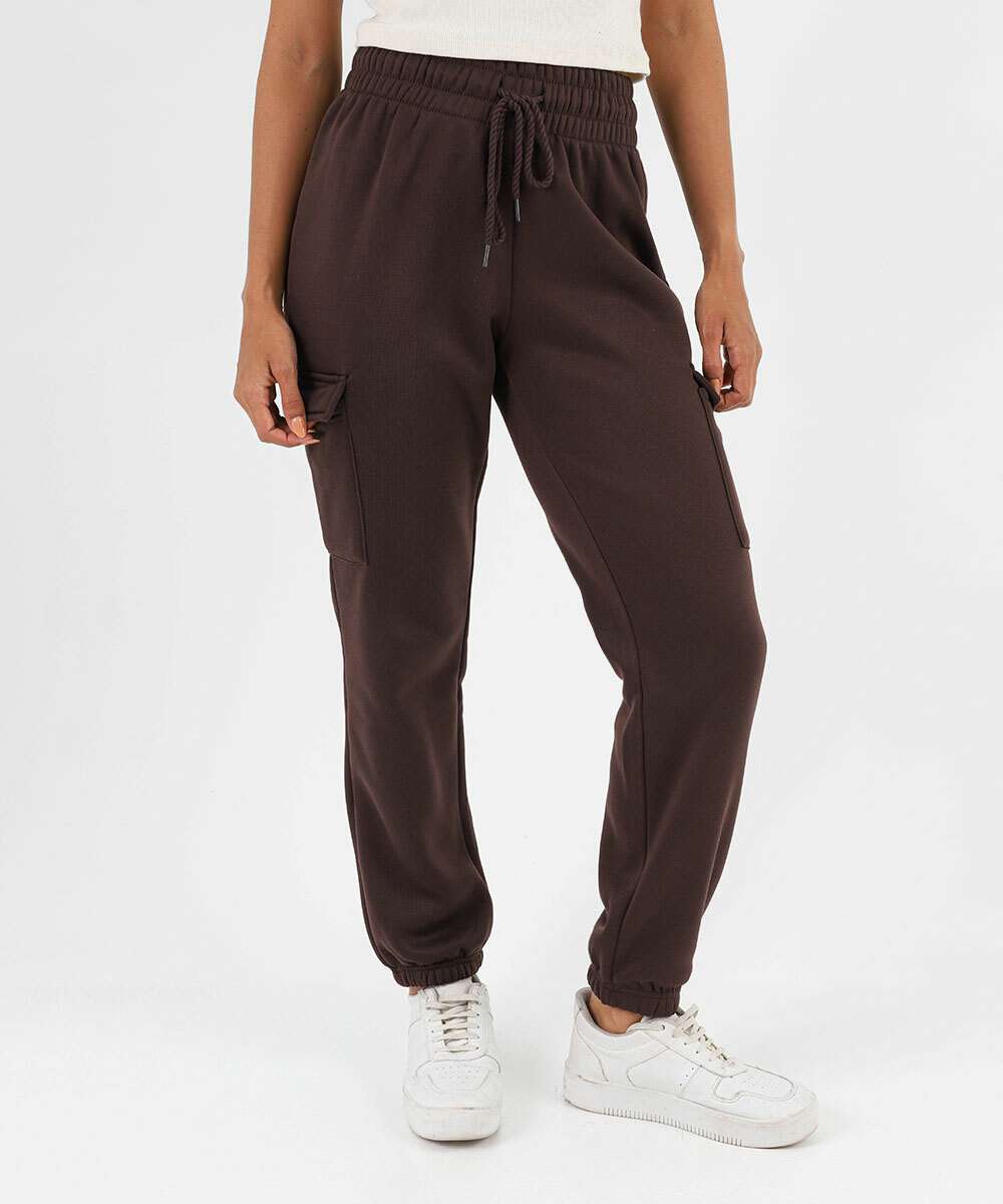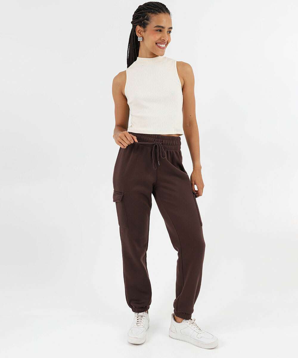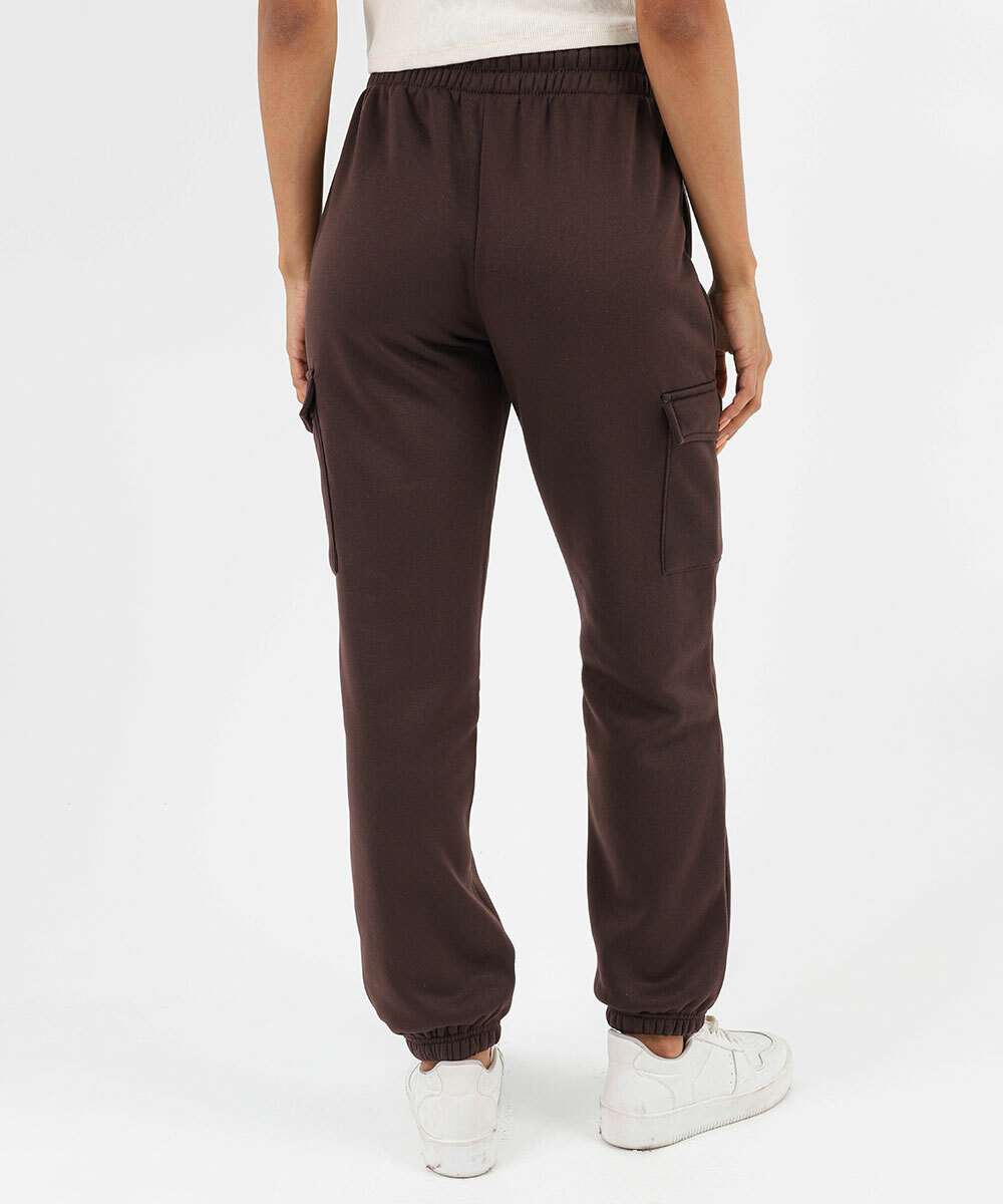 Calça Moletom Feminina Jogger Cargo Marisa Marrom