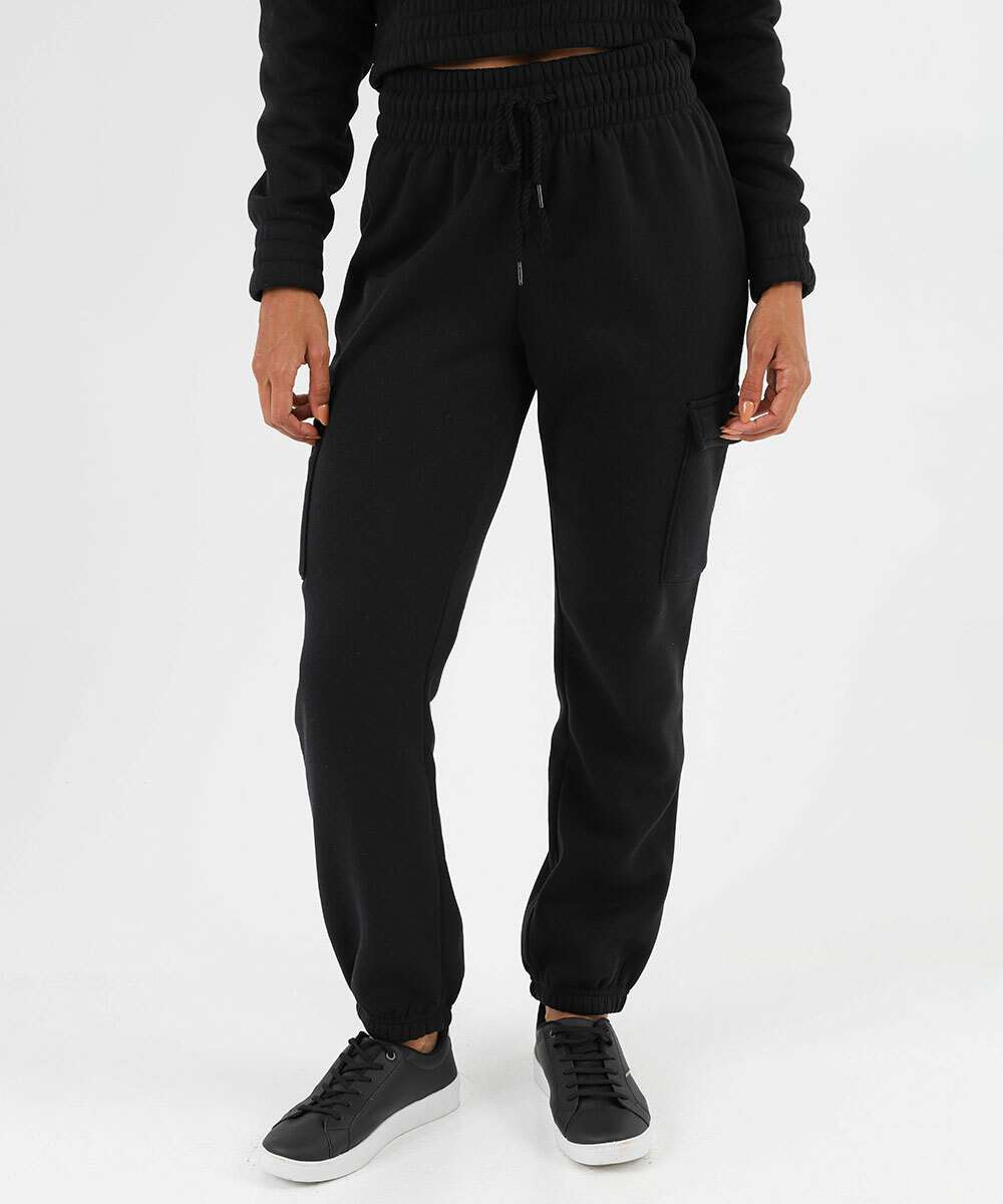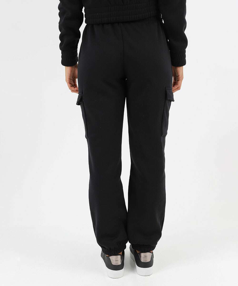 Calça Moletom Feminina Jogger Cargo Marisa Preto