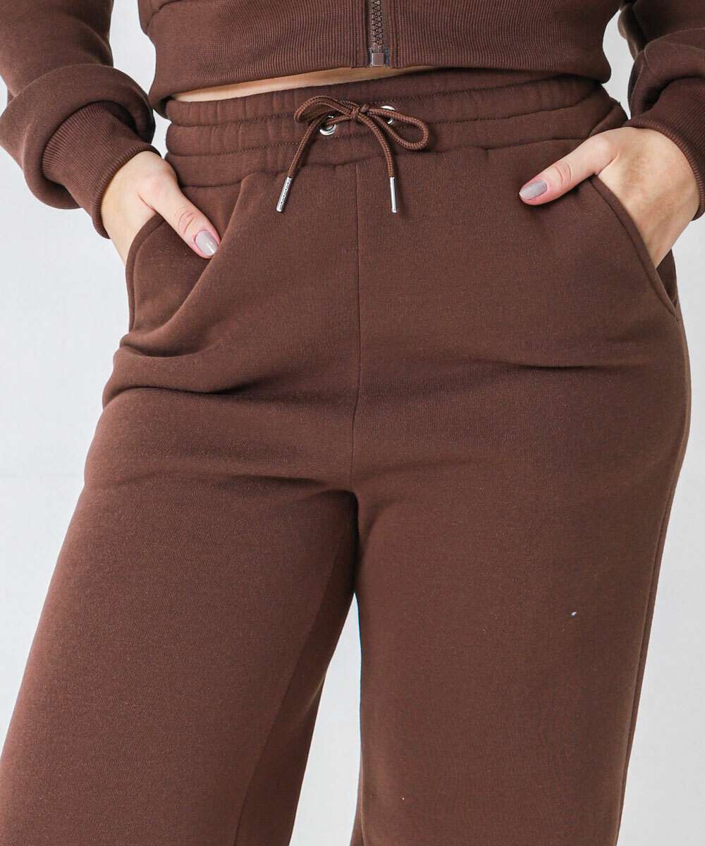 Calça Moletom Wide Leg Feminina Marisa Marrom