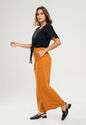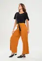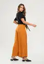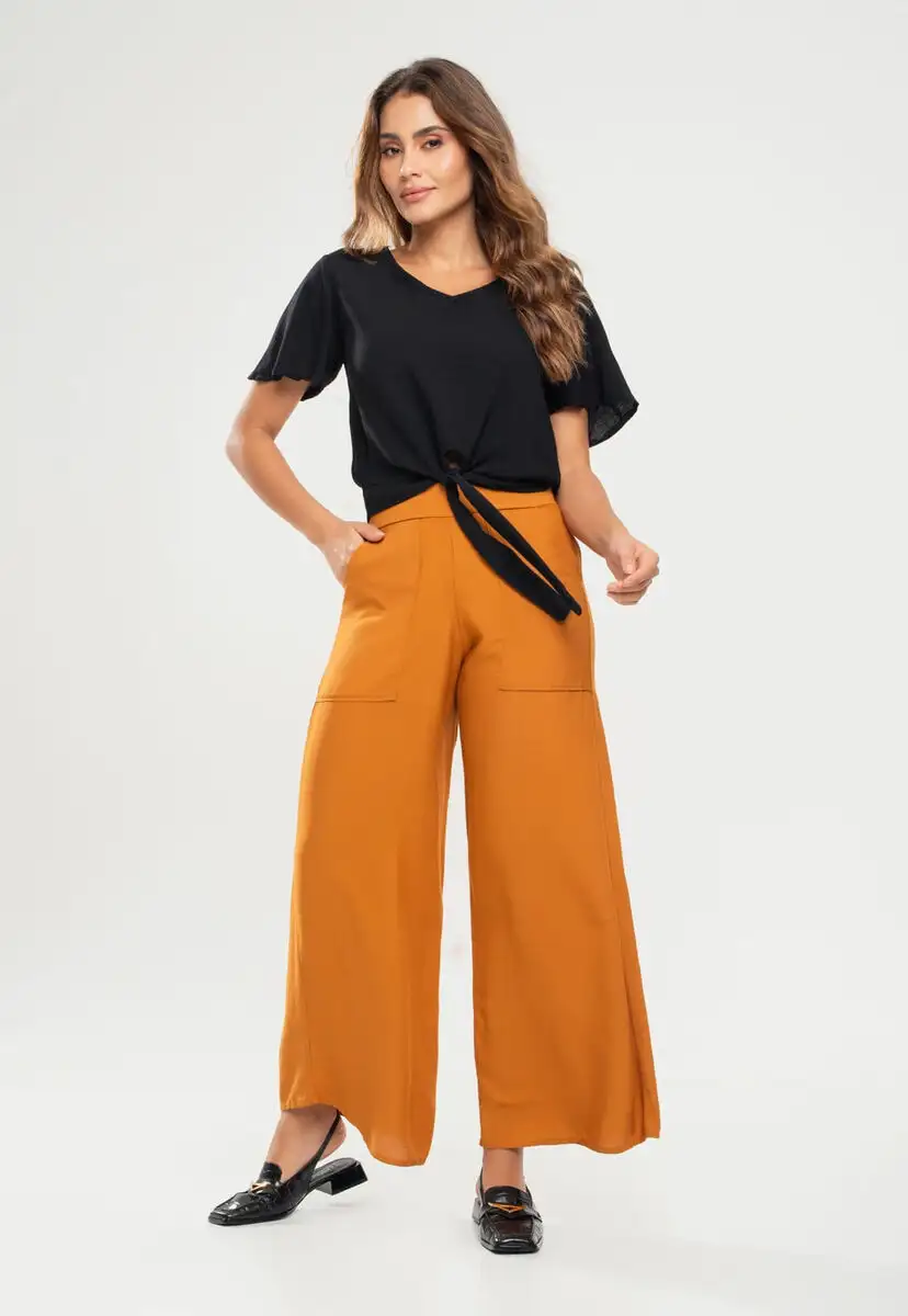 Calça Pantalona Com Bolso Viscolinho Mostarda Salvatore Fashion