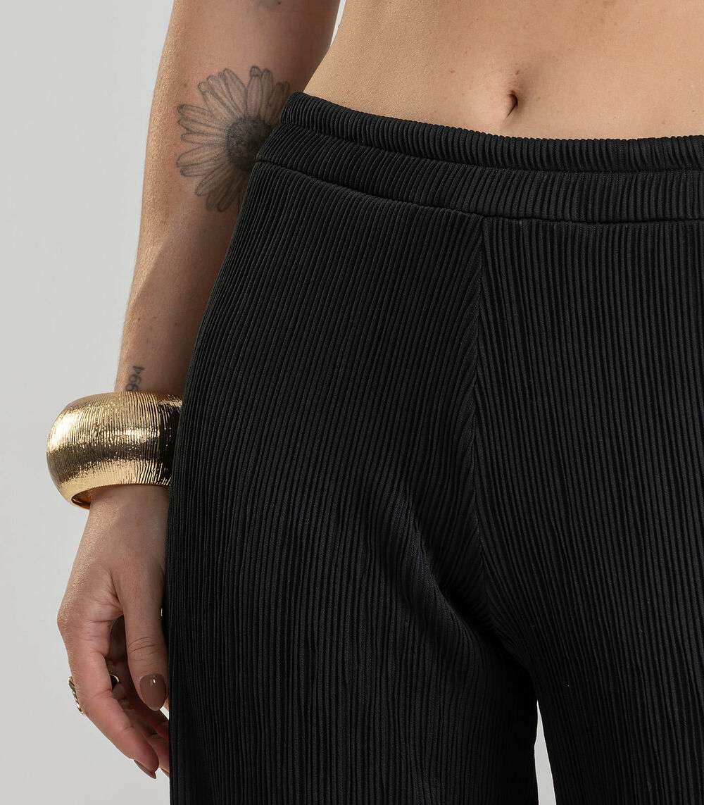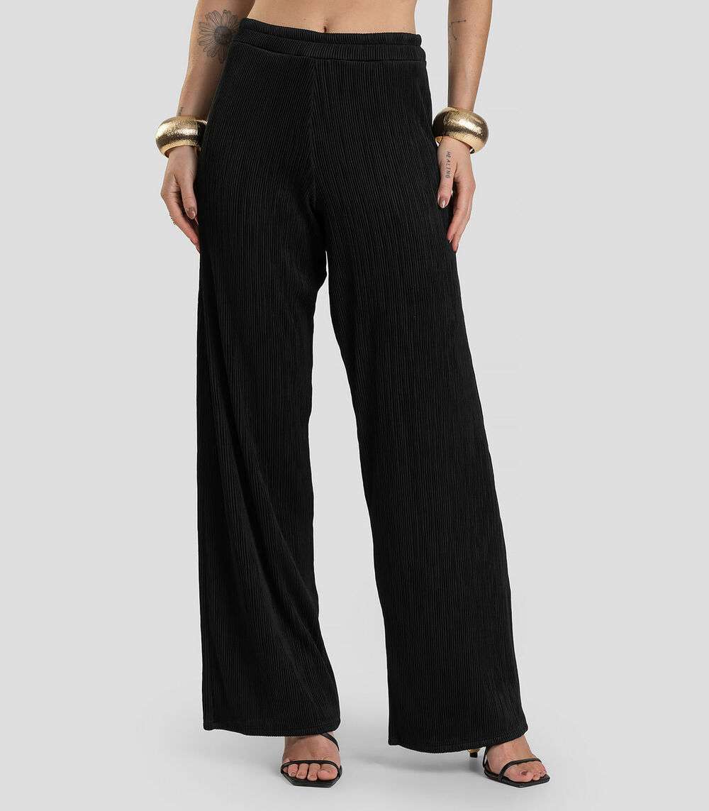 Calça Pantalona Feminina Texturizada Fluída Dianna Preto