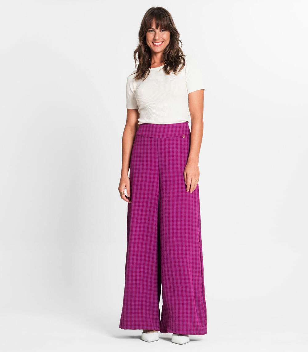 Calça Pantalona Feminina Xadrez Endless Roxo