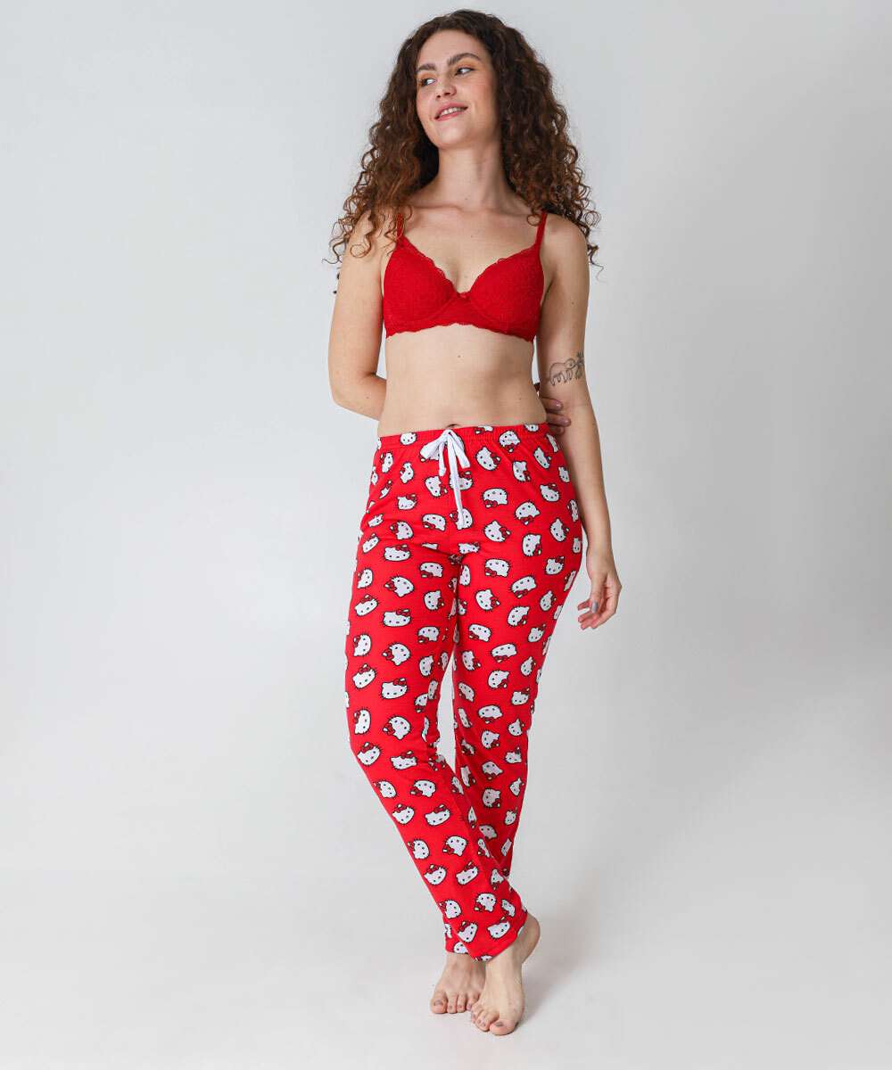 Calça Pijama Feminino Avulso Hello Kitty Vermelho