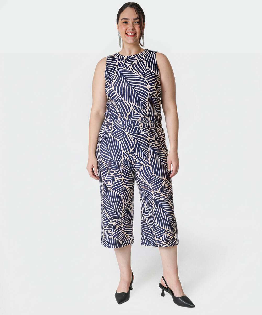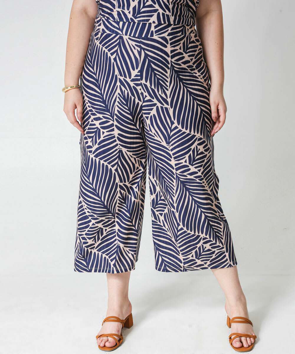 Calça Plus Size Feminina Pantacourt Folhas Marisa Azul