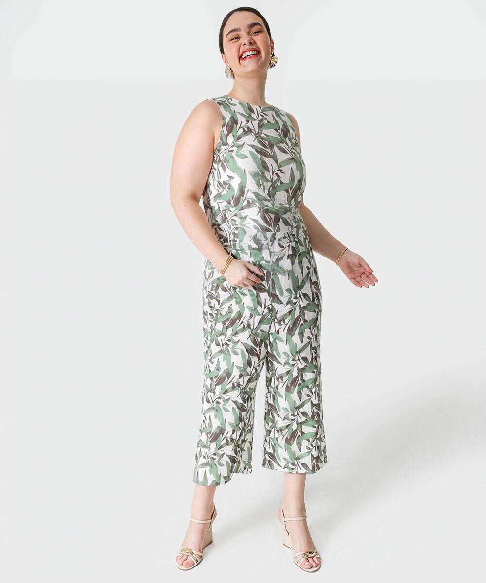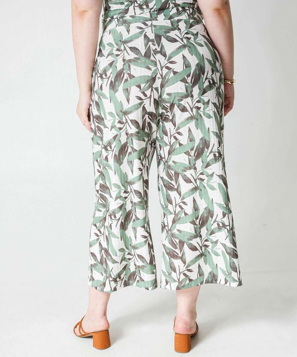 Calça Plus Size Feminina Pantacourt Folhas Marisa Verde