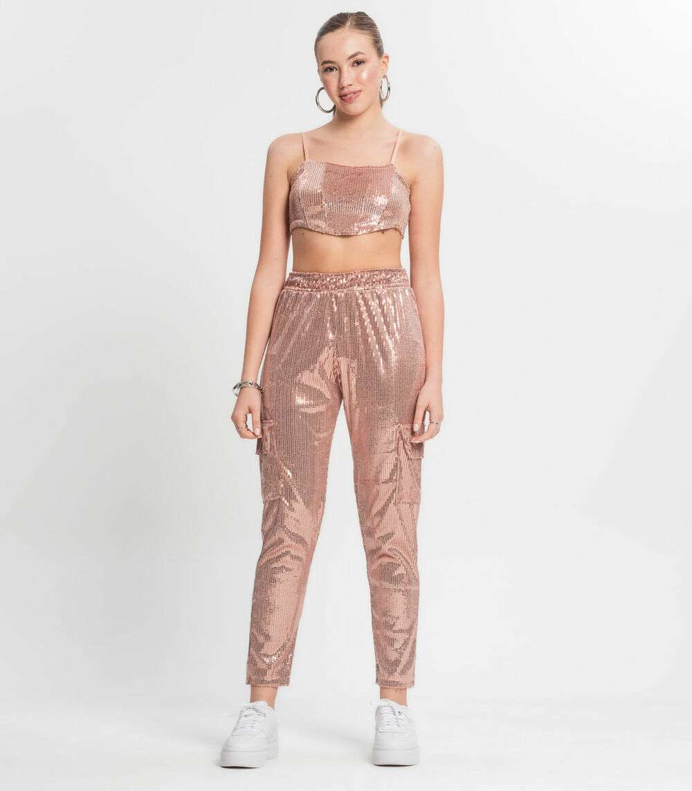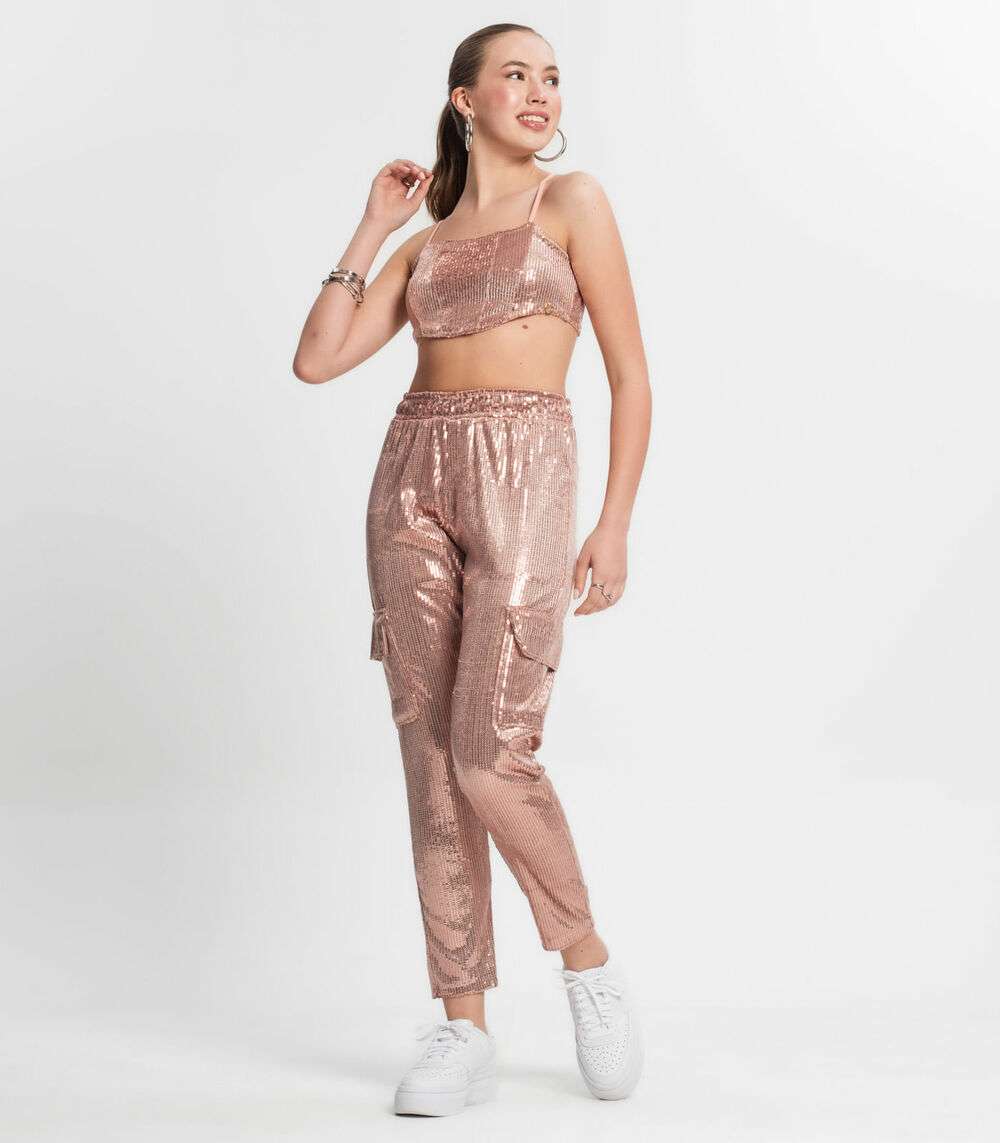 Calça Reta Juvenil Em Paetê Minty Unica