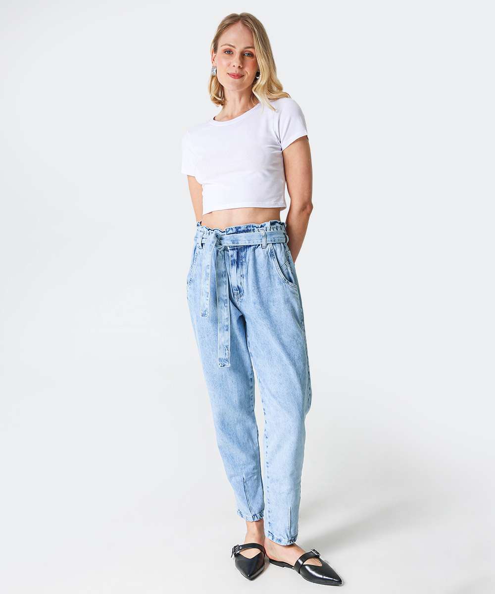 Calça Slouchy Jeans Feminina Clochard Cinto