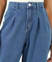 Calça Slouchy Jeans Feminina Pregas Marisa Azul