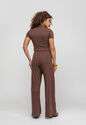 Calça Wide Leg Com Bolso Malha Marrom Salvatore Fashion