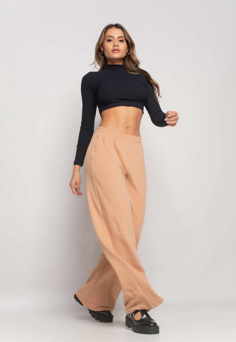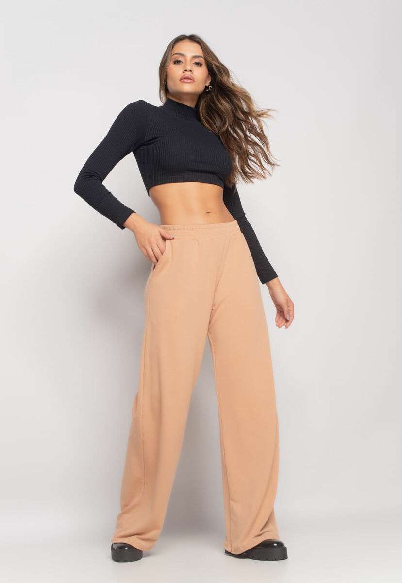 Calça Wide Leg Com Bolso Moletinho Bege Salvatore
