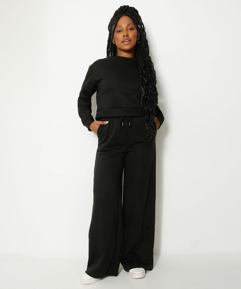 Calça Wide Leg Moletom Feminina Marisa