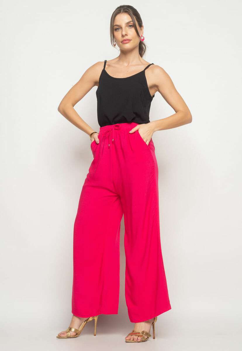 Calça Wide Leg Viscolinho Com Bolso Rosa Salvatore Fashion