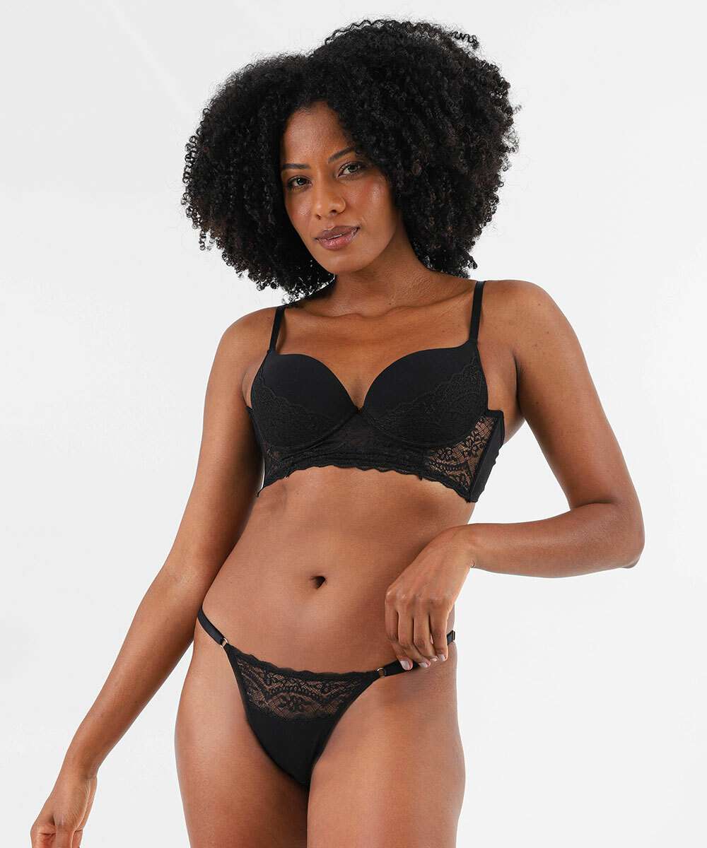Calcinha String Recorte Renda Marisa Preto