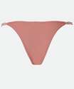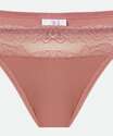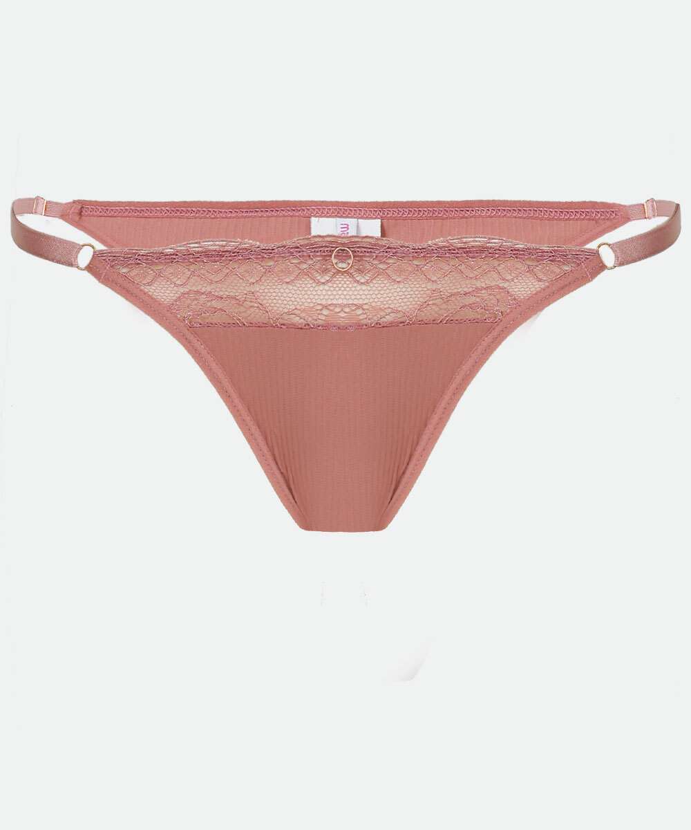 Calcinha feminina, modelo string, confeccionada em tecido poliamida e elastano com recorte em renda. Possui laterais finas ajustáveis, argola decorativa no entremeio, forro em algodão, acabamento e costura no tom.