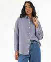 Camisa Feminina Listrada Manga Longa Marisa Azul