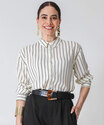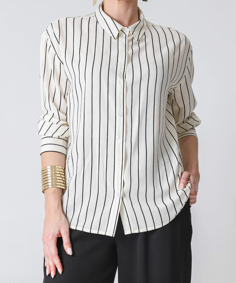 Camisa Feminina Listrada Manga Longa Marisa Bege