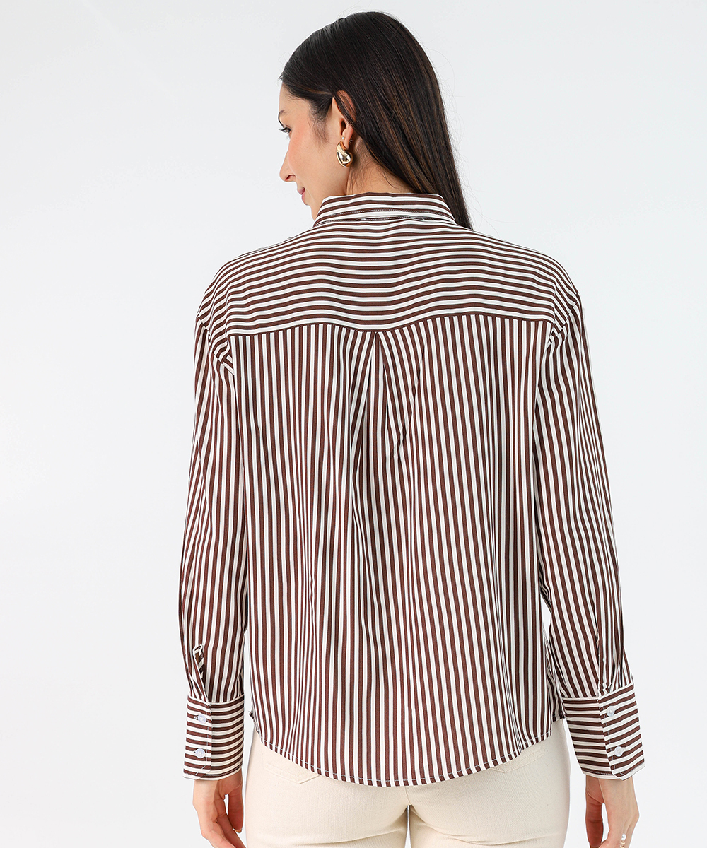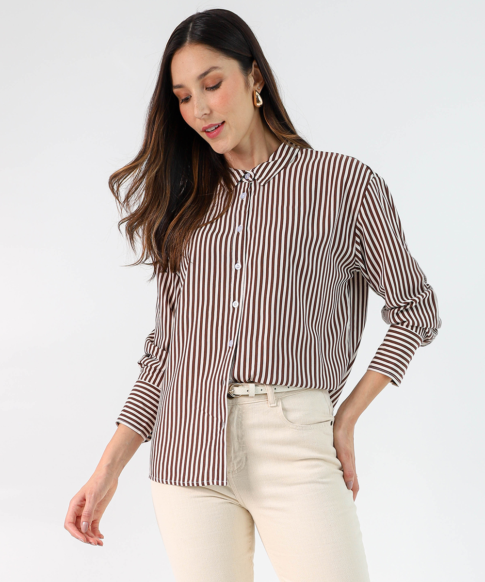 Camisa Feminina Listrada Manga Longa Marisa Off White