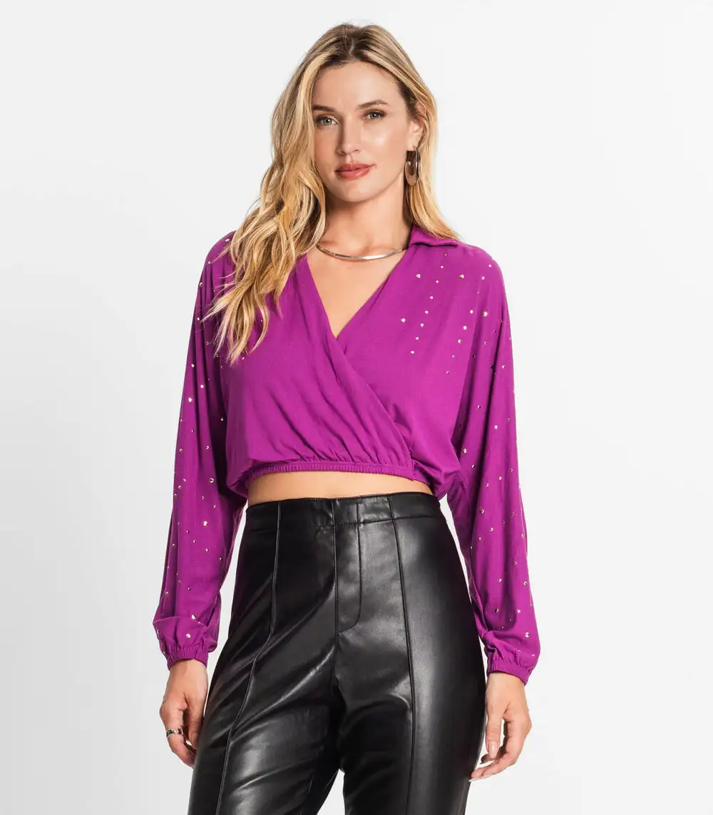 Camisa Feminina Manga Longa Com Strass Endless Roxo