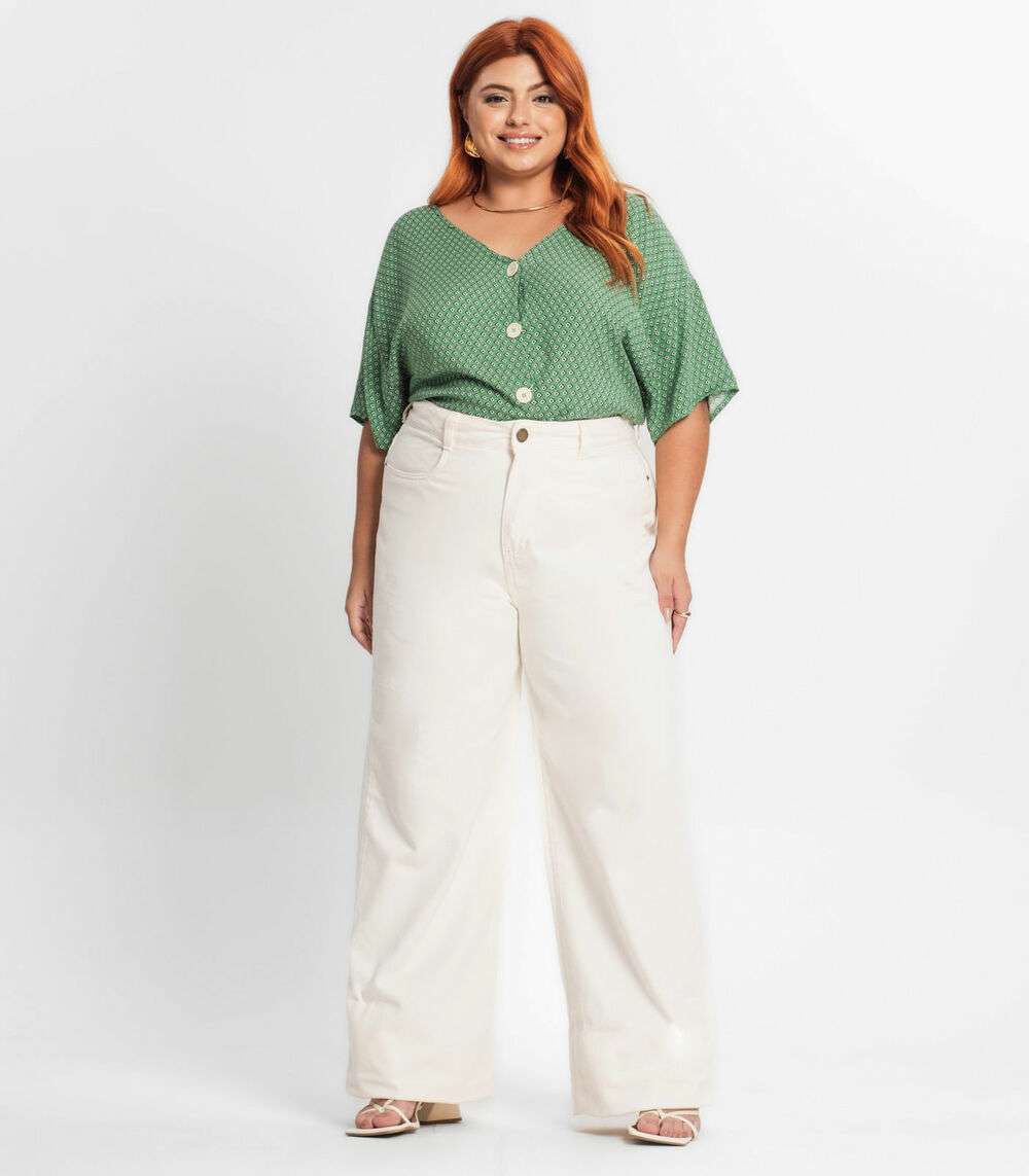 Camisa Feminina Plus Size Estampada Secret Glam Verde