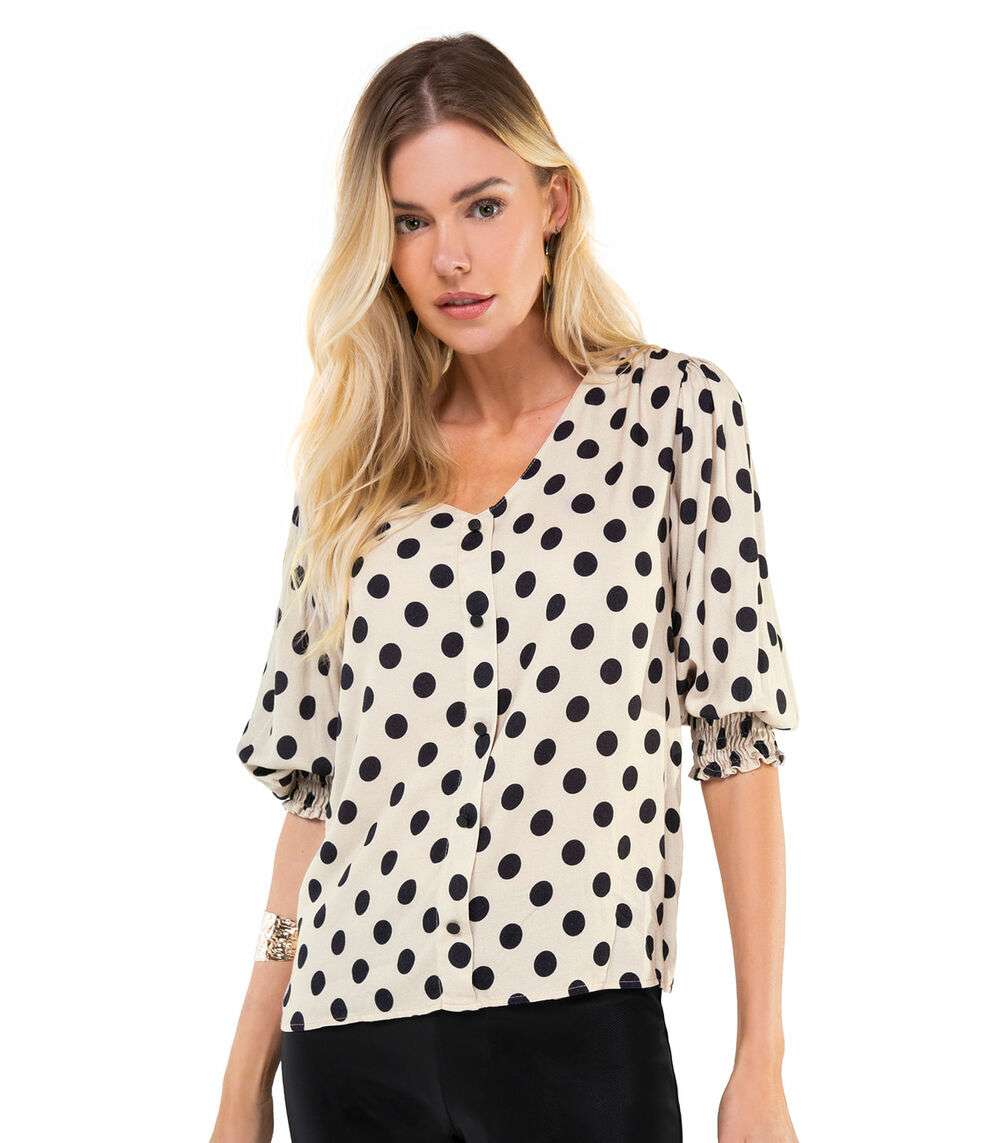 Camisa Feminina Poá Mangas 3/4 Endless Bege