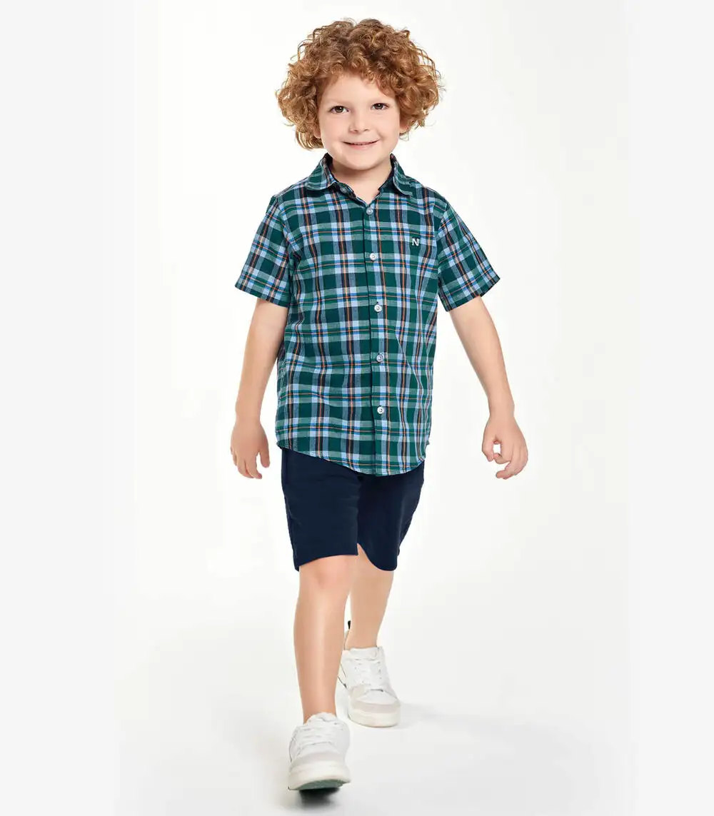 Camisa Infantil Masc Tricoline Xadrez Trick Nick Verde
