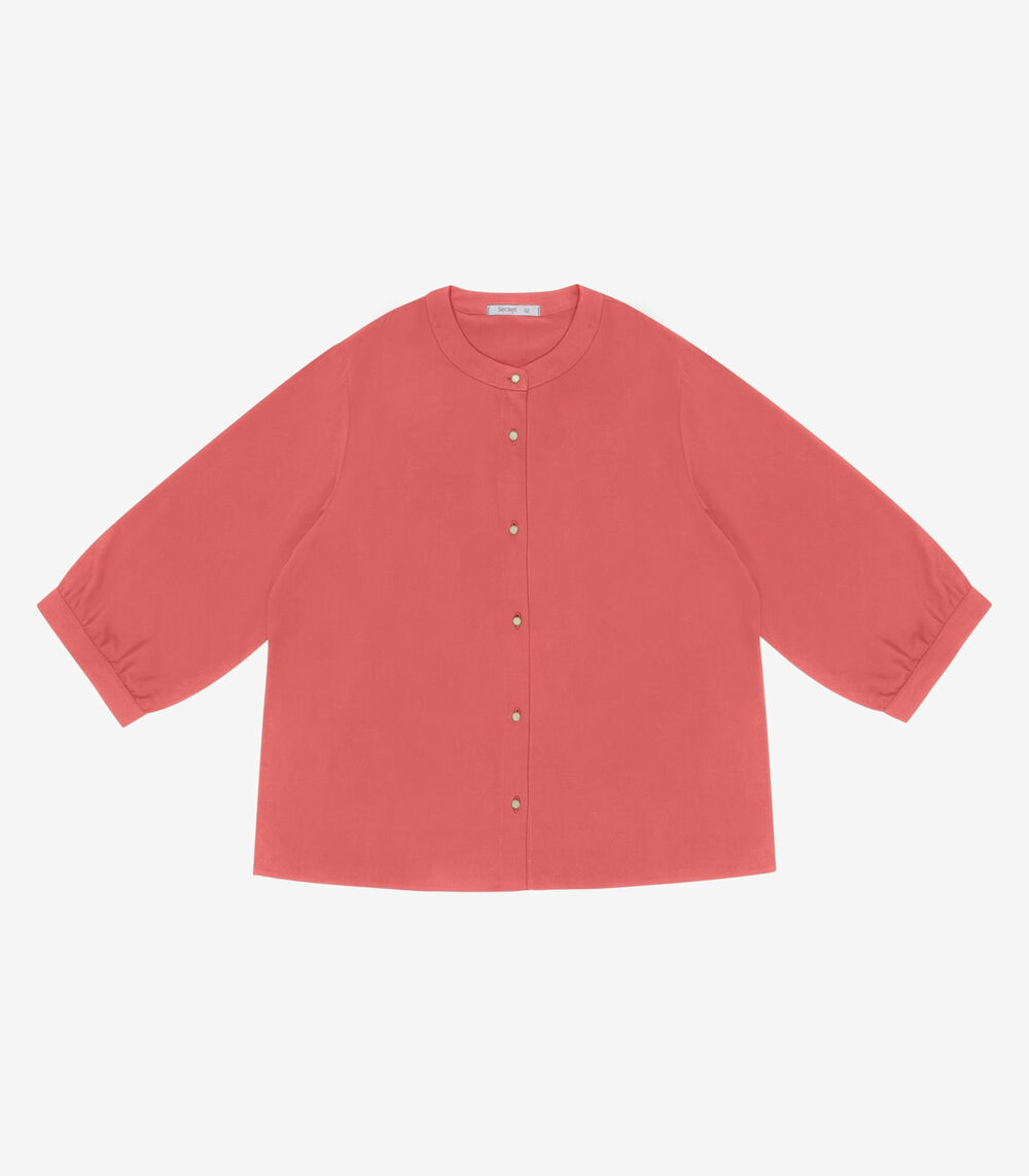 Camisa Manga 3/4 Gola Padre Plus Size Secret Glam Laranja