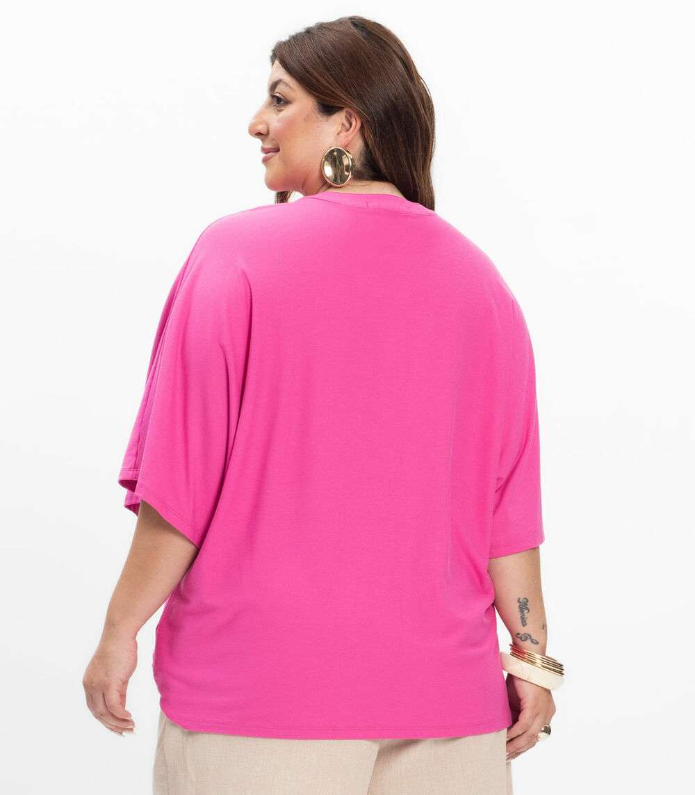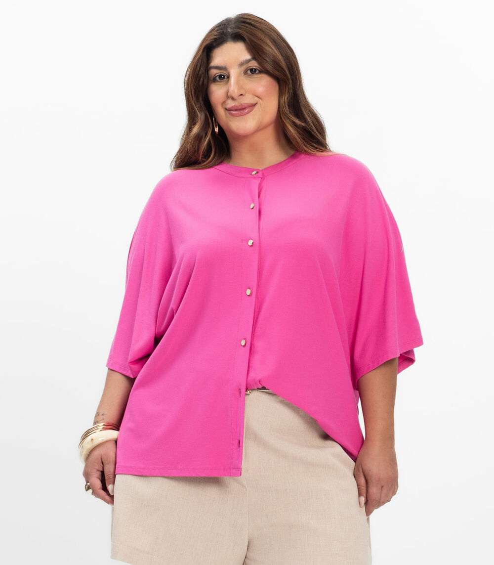 Camisa Manga Curta Feminina Plus Size Secret Glam Rosa