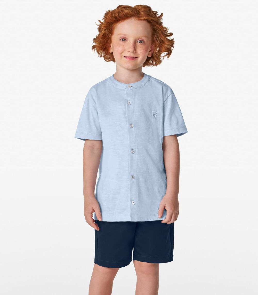 Camisa Masculina em Meia Malha MaquinetaTrick Nick Azul