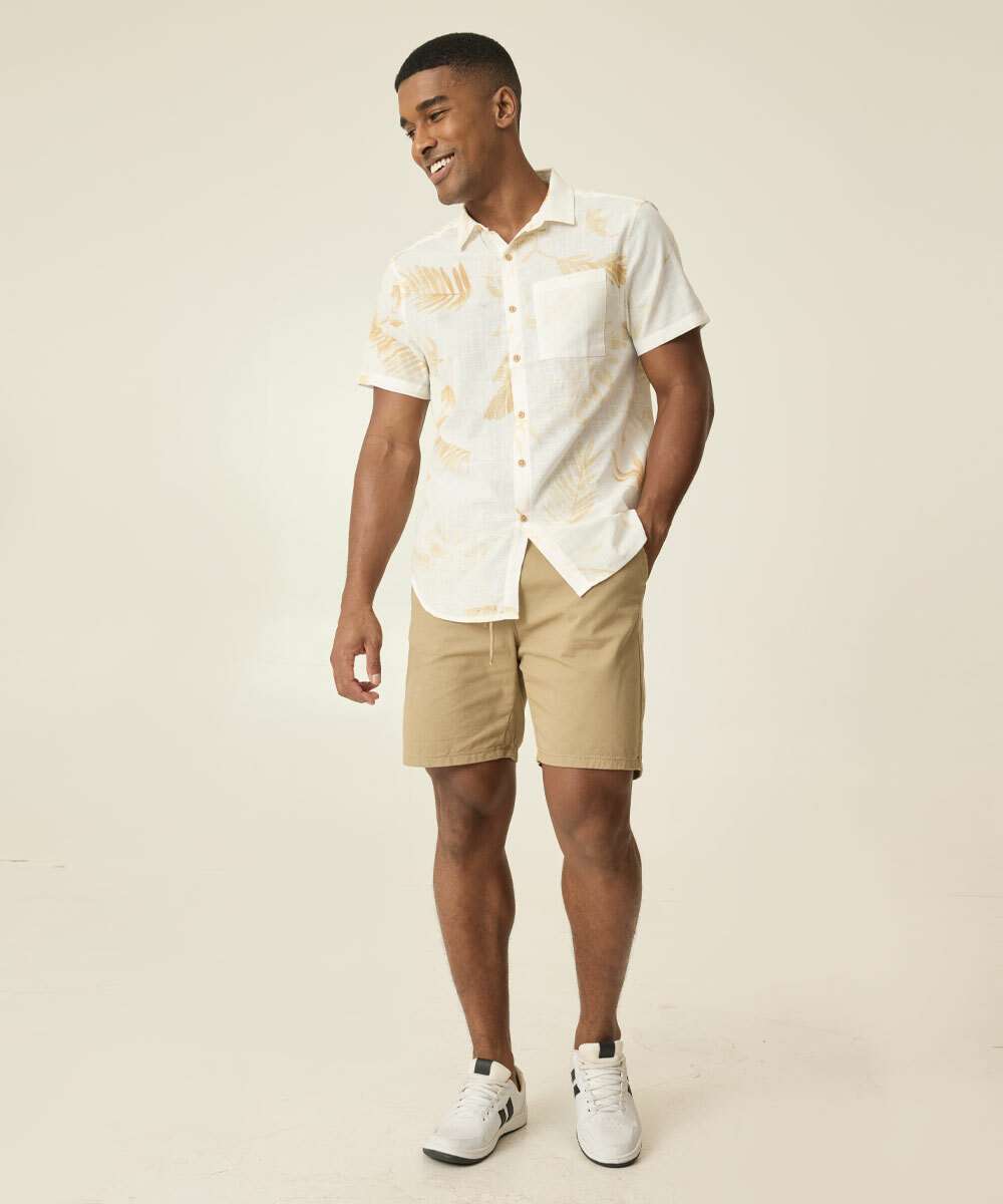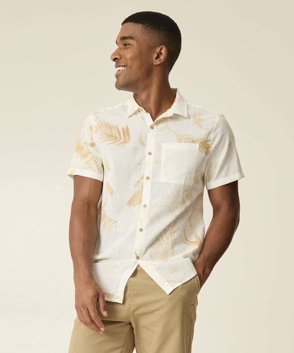 Camisa Masculina Estampa Folhas Bolso Manga Curta MR