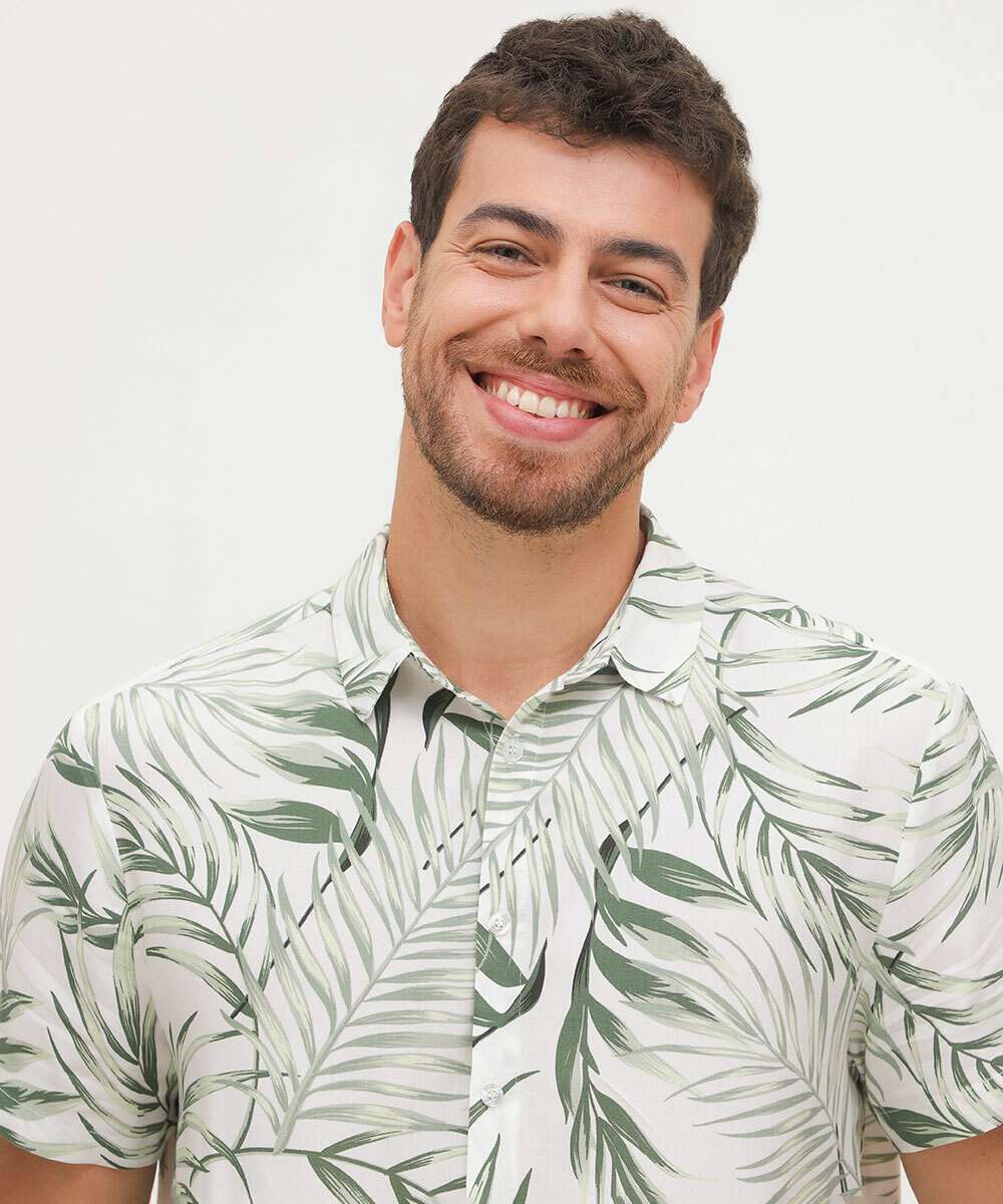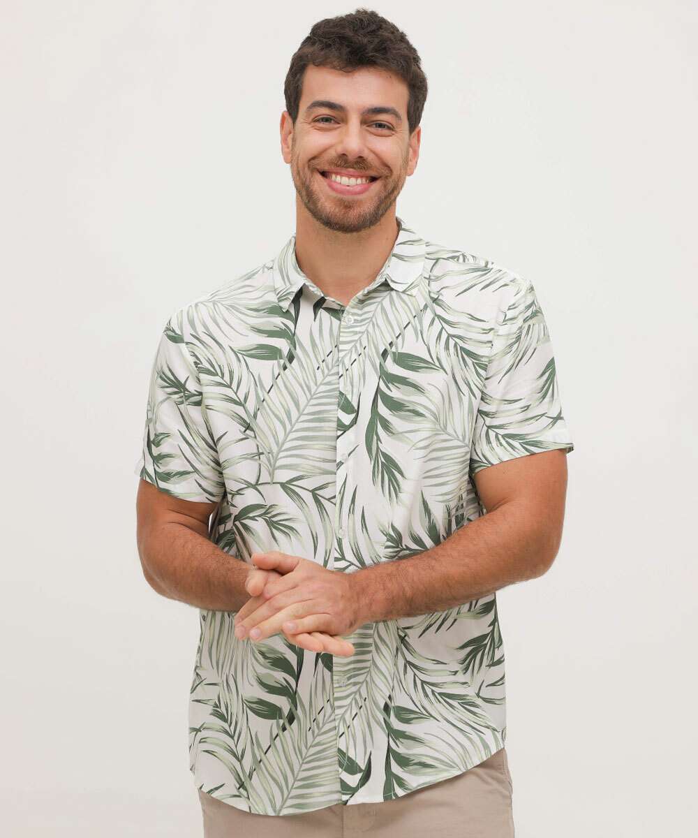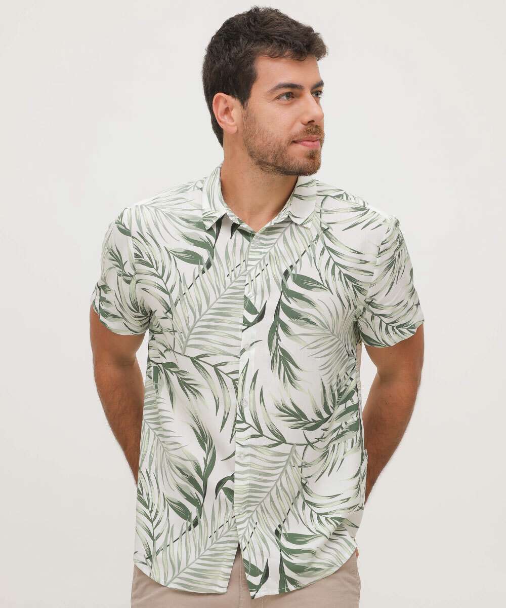 Camisa Masculina Estampa Folhas Manga Curta MR
