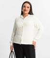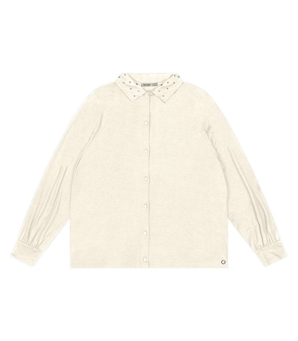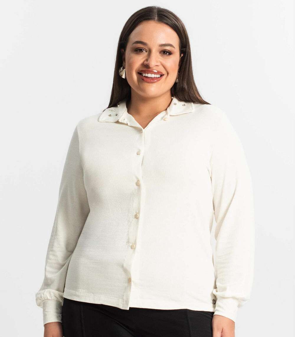 Camisa Plus Size Manga Longa Feminina Secret Glam Bege