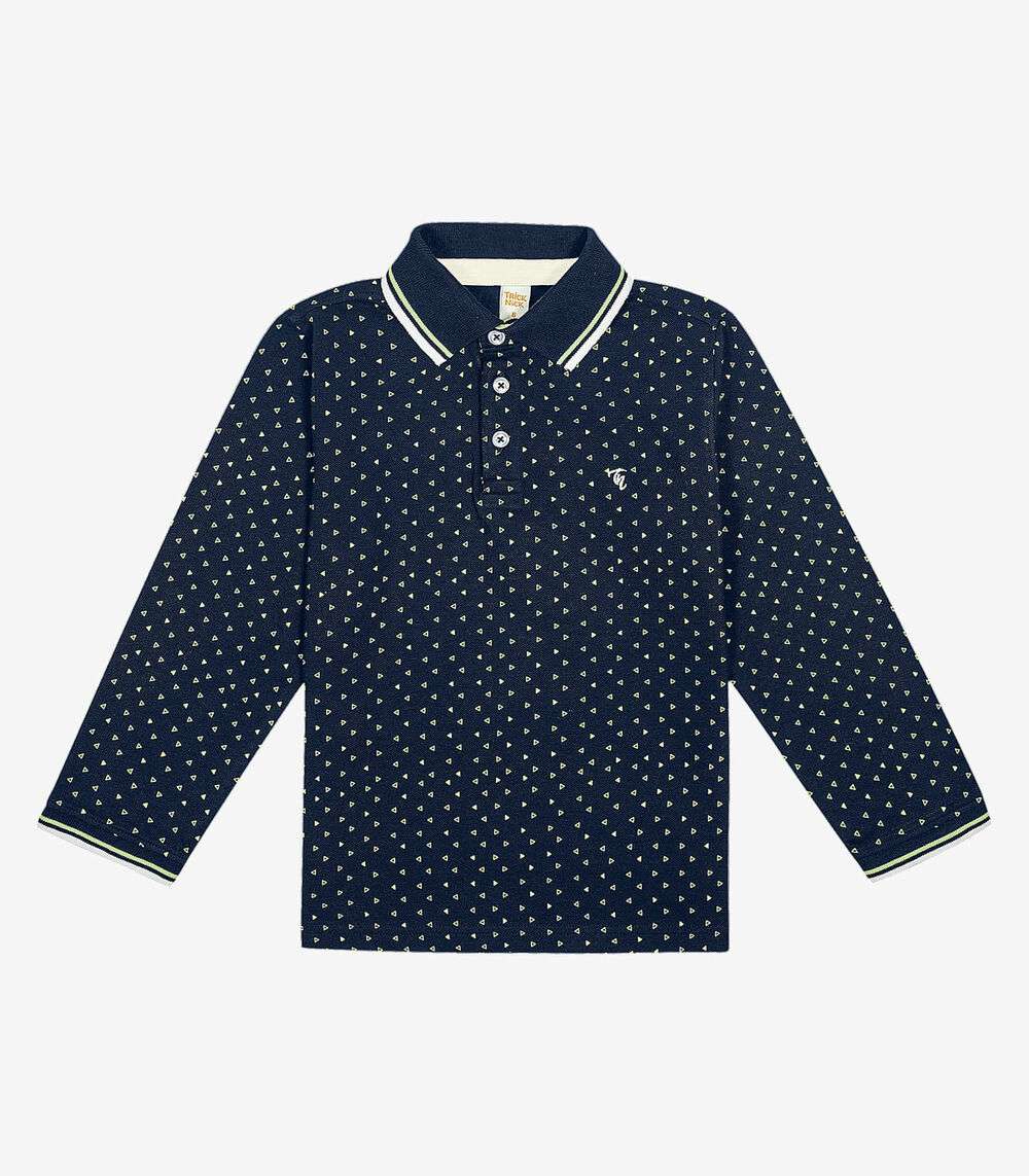 Camisa Polo Infantil Manga Longa Trick Nick Azul