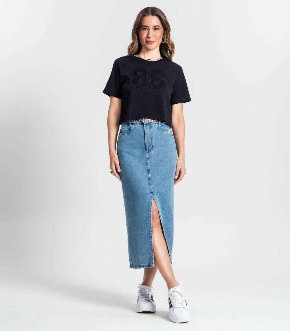 Camiseta Feminina Em Meia Malha Rovitex Preto