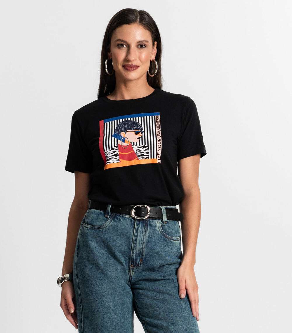 Camiseta Feminina Em Meia Malha Rovitex Preto