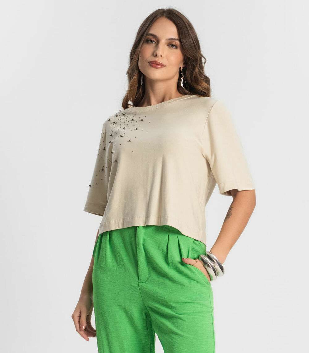 Camiseta Feminina Manga Curta Endless Bege